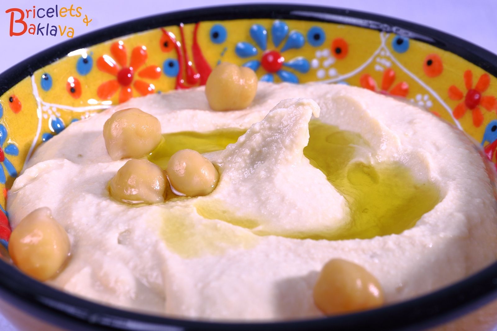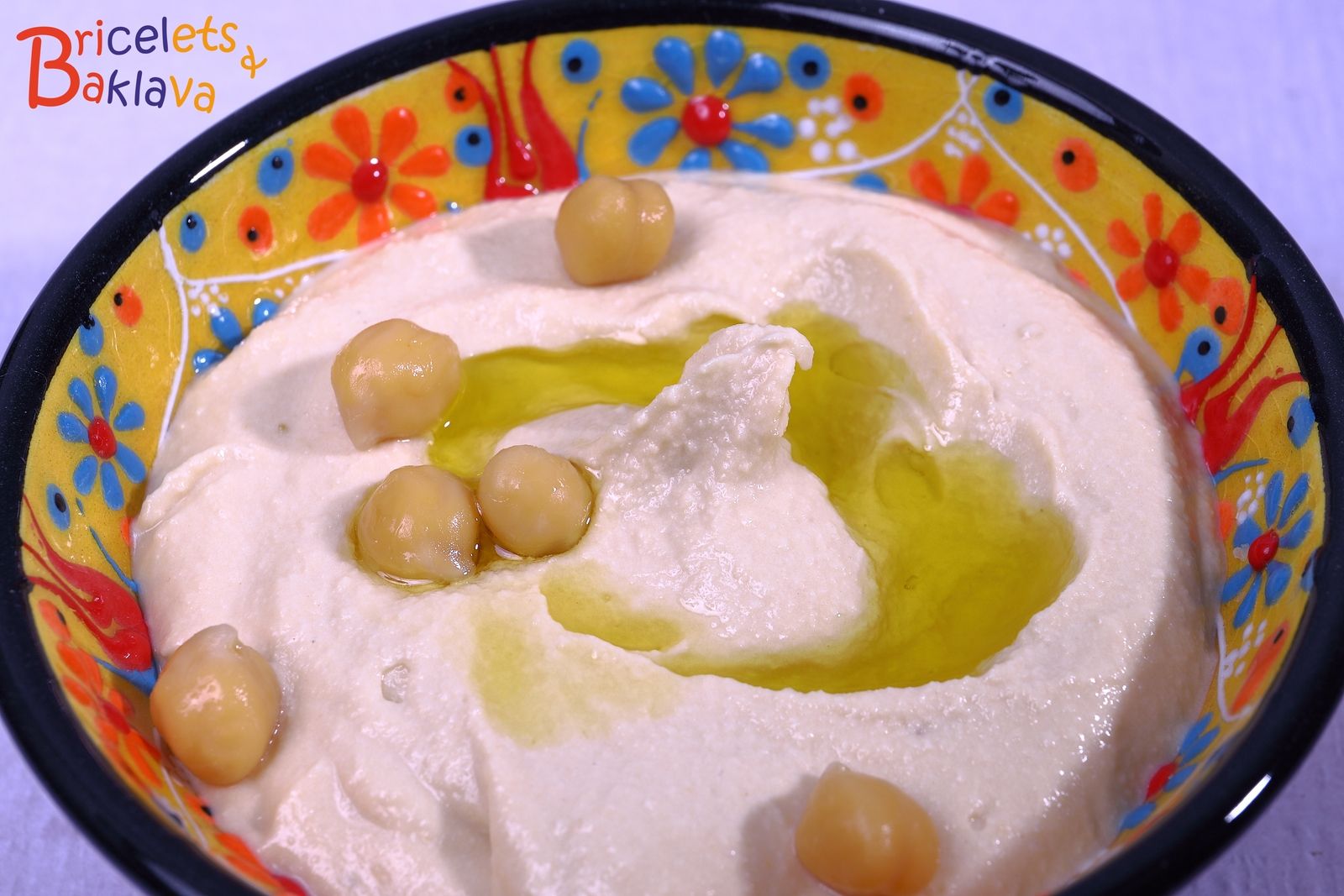 Revenons à notre houmous qui est tout simplement une purée de pois chiches cuits et mixée avec du tahini, de l’ail et du jus de citron. Le tahini est une crème de graines de sésame et actuellement on en trouve facilement dans les magasins spécialisés et même en grande surface.