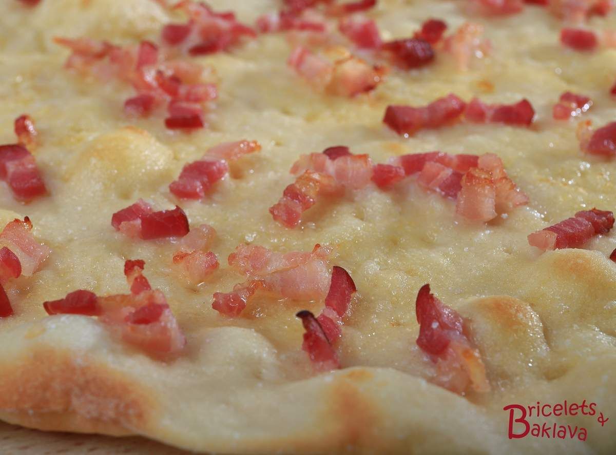 Voici une spécialité propre aux cantons de Vaud et Neuchâtel. En fait c’est une sorte de tarte super fine à base de pâte à pain et parsemée de flocons de beurre qui est ensuite cuite quelques minutes à très haute température.