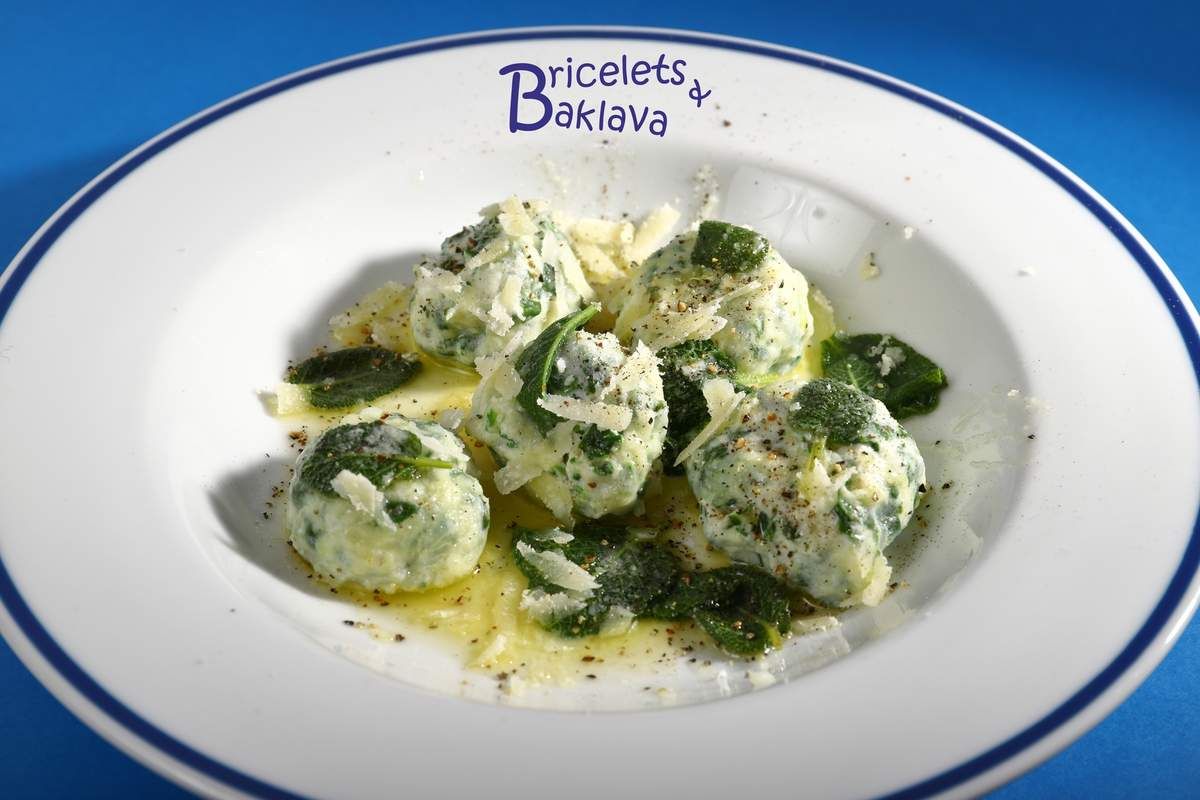 Voici une spécialité italienne, plus précisément de Toscane. C’est une sorte de gnocchi mais à base de ricotta. Ceux-ci sont aux épinards accompagnés d’un beurre de sauge, vraiment léger, aérien, goûteux, toute l’Italie dans votre assiette.