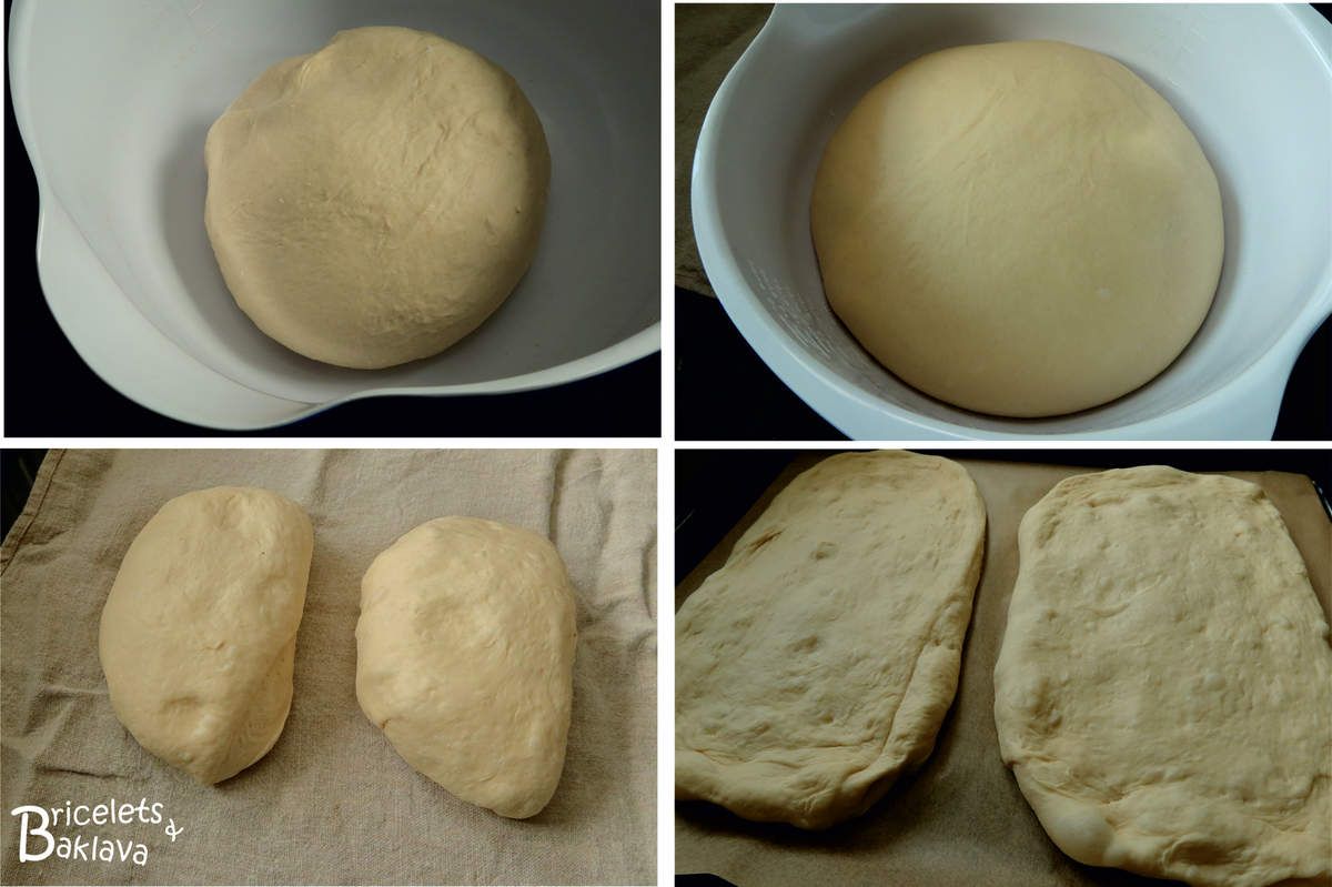 Lorsque la pâte a doublé de volume, la diviser en deux pâtons et sans trop les manipuler, les déposer sur un torchon et recouvrir d’un deuxième torchon humide. Laisser détendre 10 minutes.