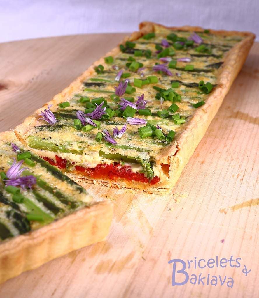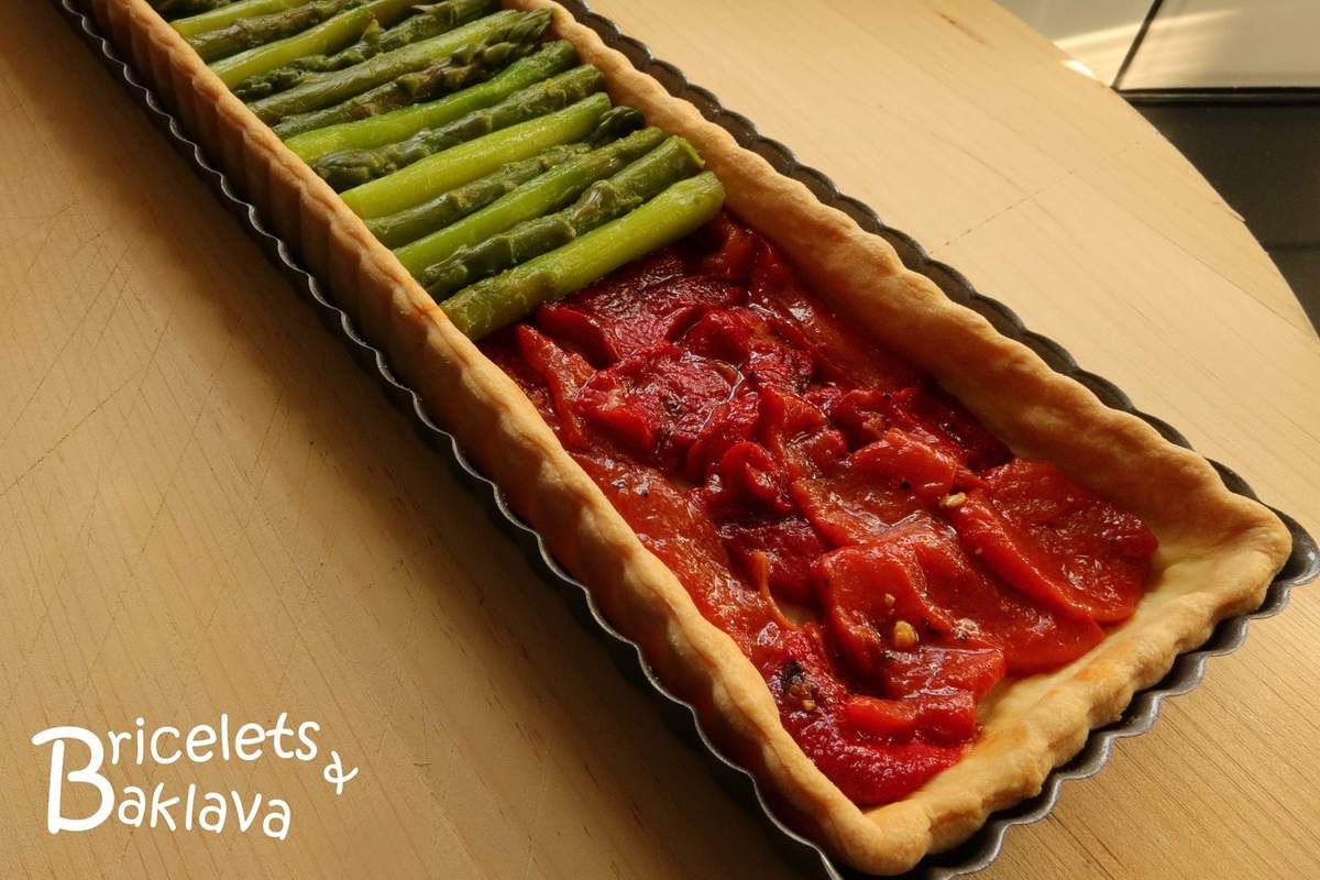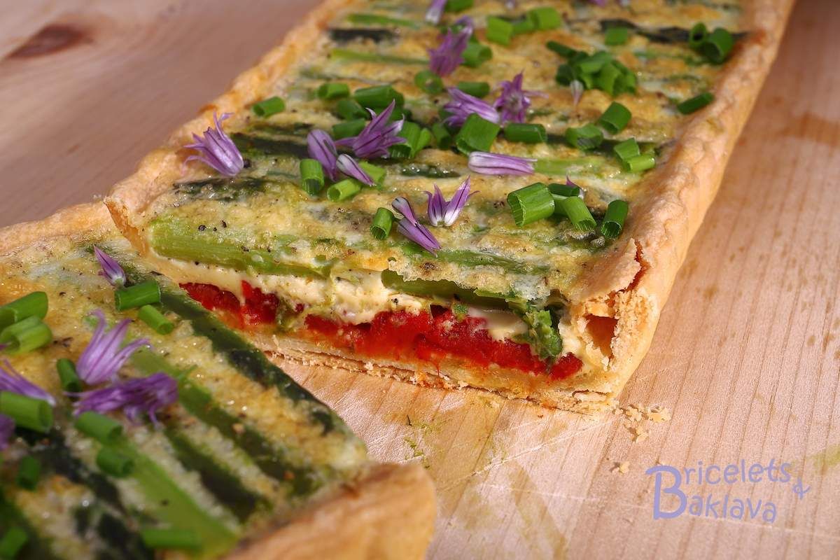 La tarte rouge aux asperges vertes