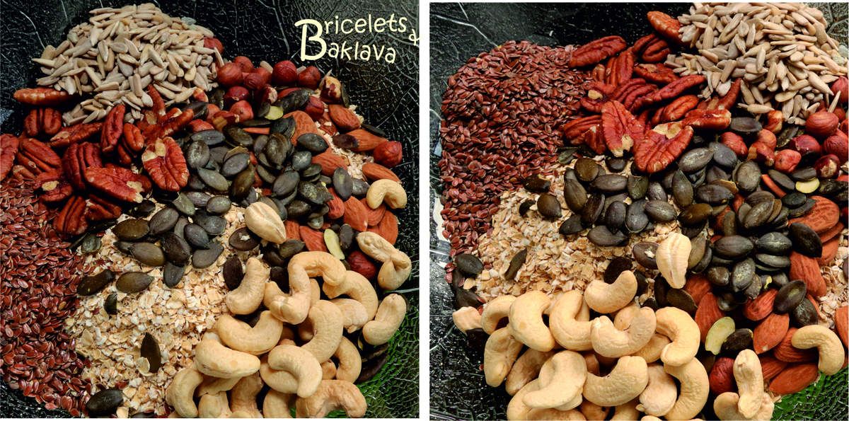 Pour faire cette recette, je n’utilise que des flocons de grains entiers, des graines et noix BIO, de l’huile non raffinée et le tout sucré naturellement. De plus, le granola fait maison est des plus simple à réaliser.