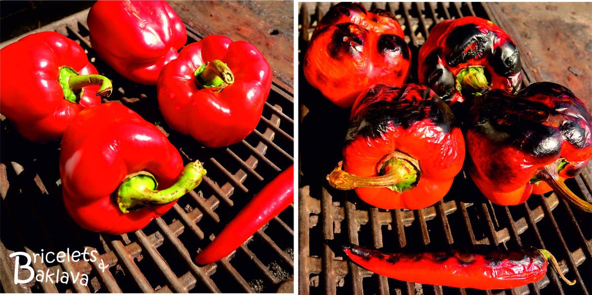 Une fois la cuisson terminée, couvrir les poivrons avec un torchon et attendre un peu avant de les peller, les épépiner et les débiter en petits cubes.