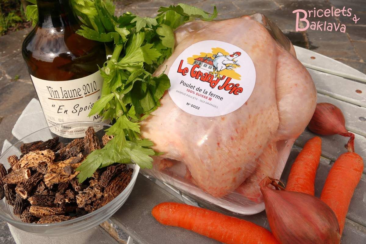 Pour cette recette, j’ai utilisé un poulet de la ferme de nos amis Eddy et Christine Gaspoz, cultivateurs et éleveurs de poulets fermiers. Un vrais must leurs poulets, dodus, goutus, idéals pour un poulet au vin jaune. Et une traçabilité sans faille, tous les poulets sont étiquetés par code couleurs et numérotés pour une meilleure traçabilité. Pour la préparation de la recette ci-dessous, j’avais choisi le numéro 22, pas mal pour un poulet ! Pour une fois qu'on peut griller quelque chose sans avoir d'amende !