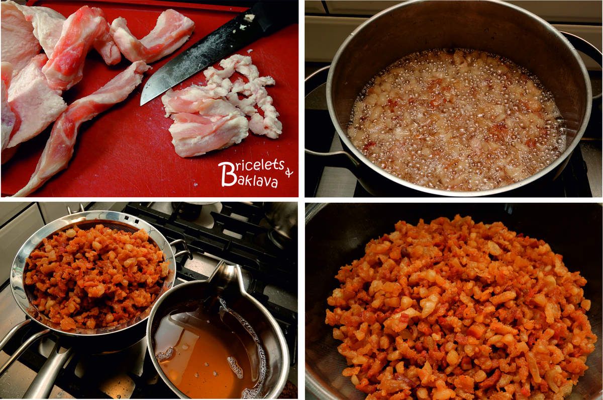 Heureusement, il y a encore quelques bouchers qui fabriquent leur propre saindoux à l’ancienne, donc se sont chez eux que vous allez pouvoir en trouver du bon et par conséquence de délicieux greubons.