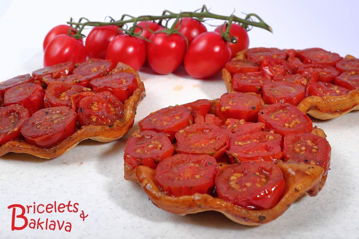 C’est l’été, les tomates cerise sont mûres, on va pouvoir se régaler avec cette magnifique entrée de tartelettes, en version salée de la célèbre tarte des demoiselles Tatin.