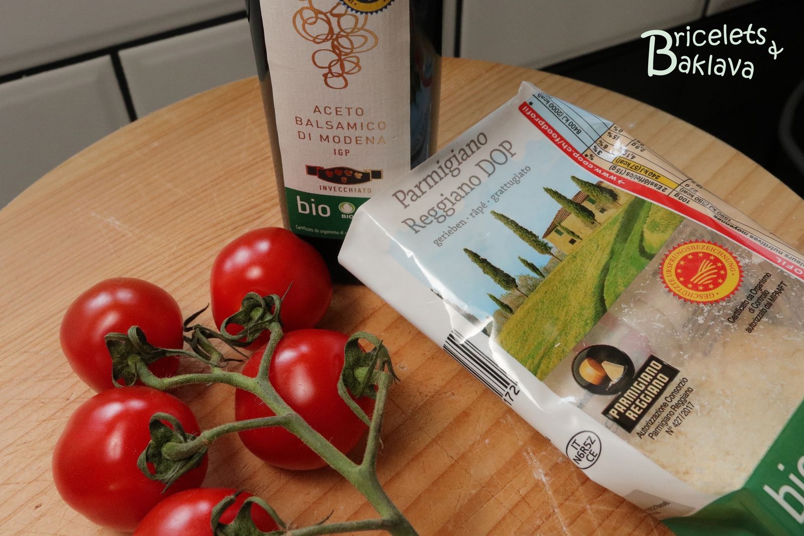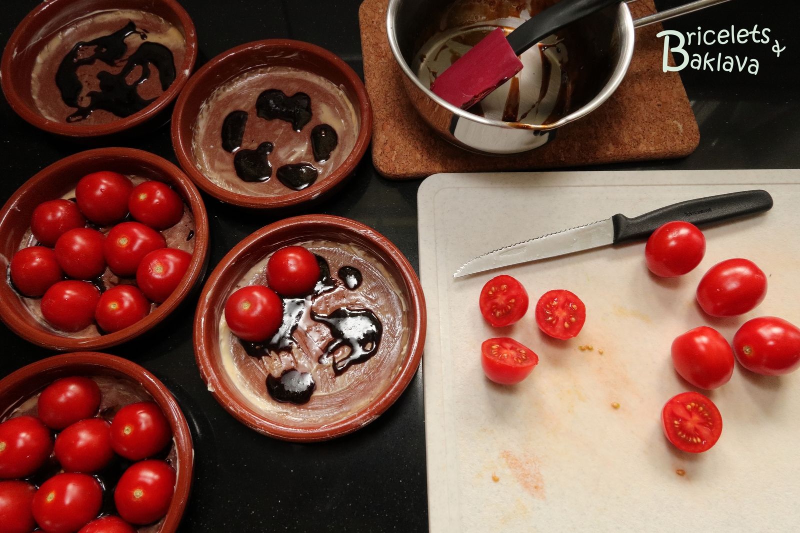Ici ce sera une pâte brisée au Parmesan qui recouvrera les tomates, caramélisées avec un sirop au vinaigre balsamique. Un mariage heureux pour nos papilles.