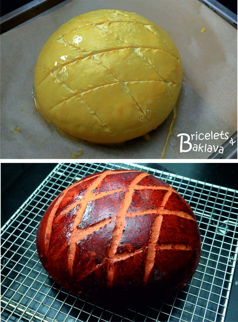 Dorer une deuxième fois les cuchaules et avec un petit couteau d’office bien aiguisé, inciser en losanges les cuchaules, mais ceci vraiment en surface, sans trop appuyer.