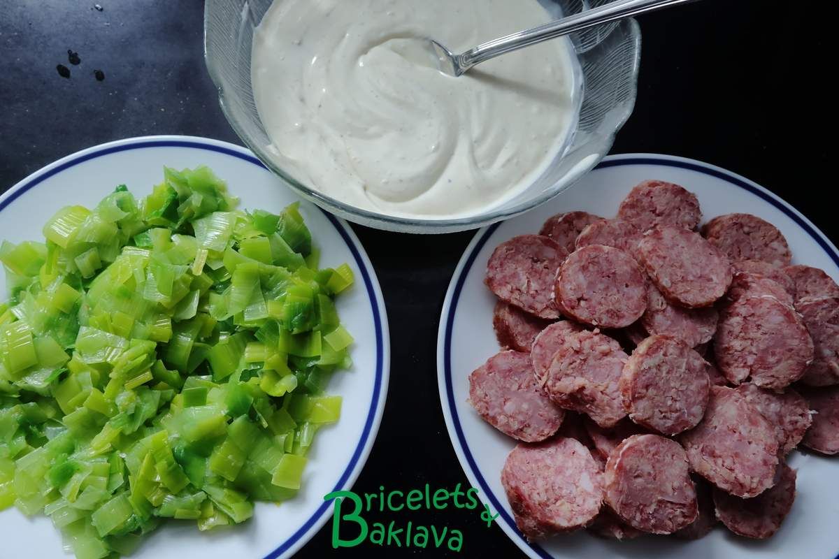 Ma recette du papet suivra ici prochainement mais en attendant, je vous livre une création personnelle de ma tarte vaudoise dont les ingrédients rappellent ce fameux papet, soit pommes de terre, poireaux et saucisses. Les pommes de terre sont dans la pâte, les poireaux et la saucisse sont par-dessus et le chasselas est dans la crème. Voilà, je crois que tout-y est.
