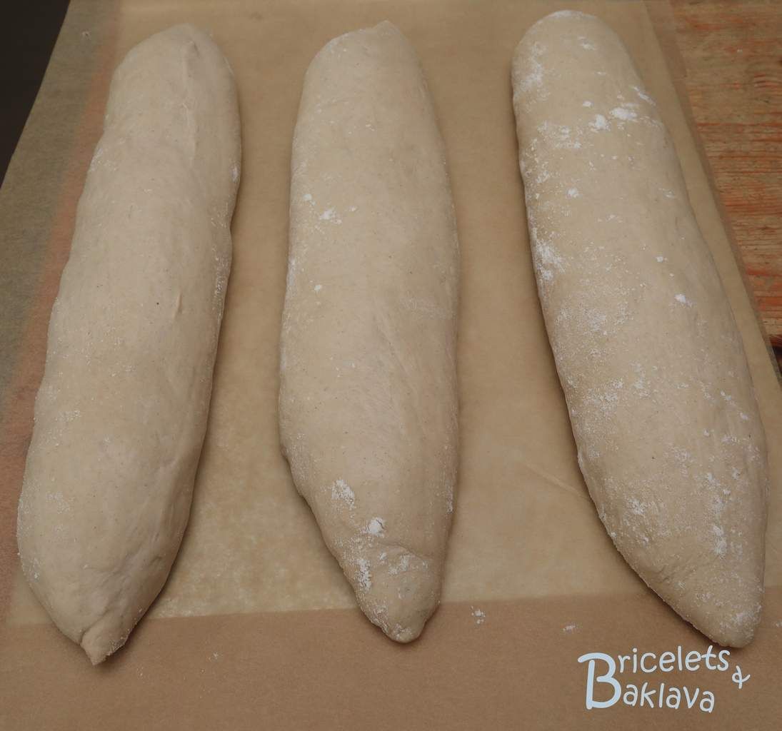Délicatement, retourner les pains sur une plaque recouverte de papier sulfurisé en mettant la soudure au-dessous.