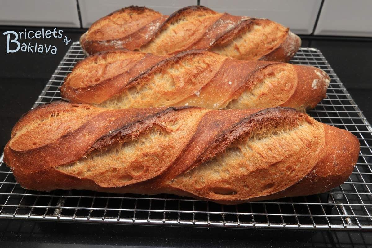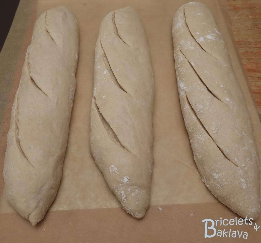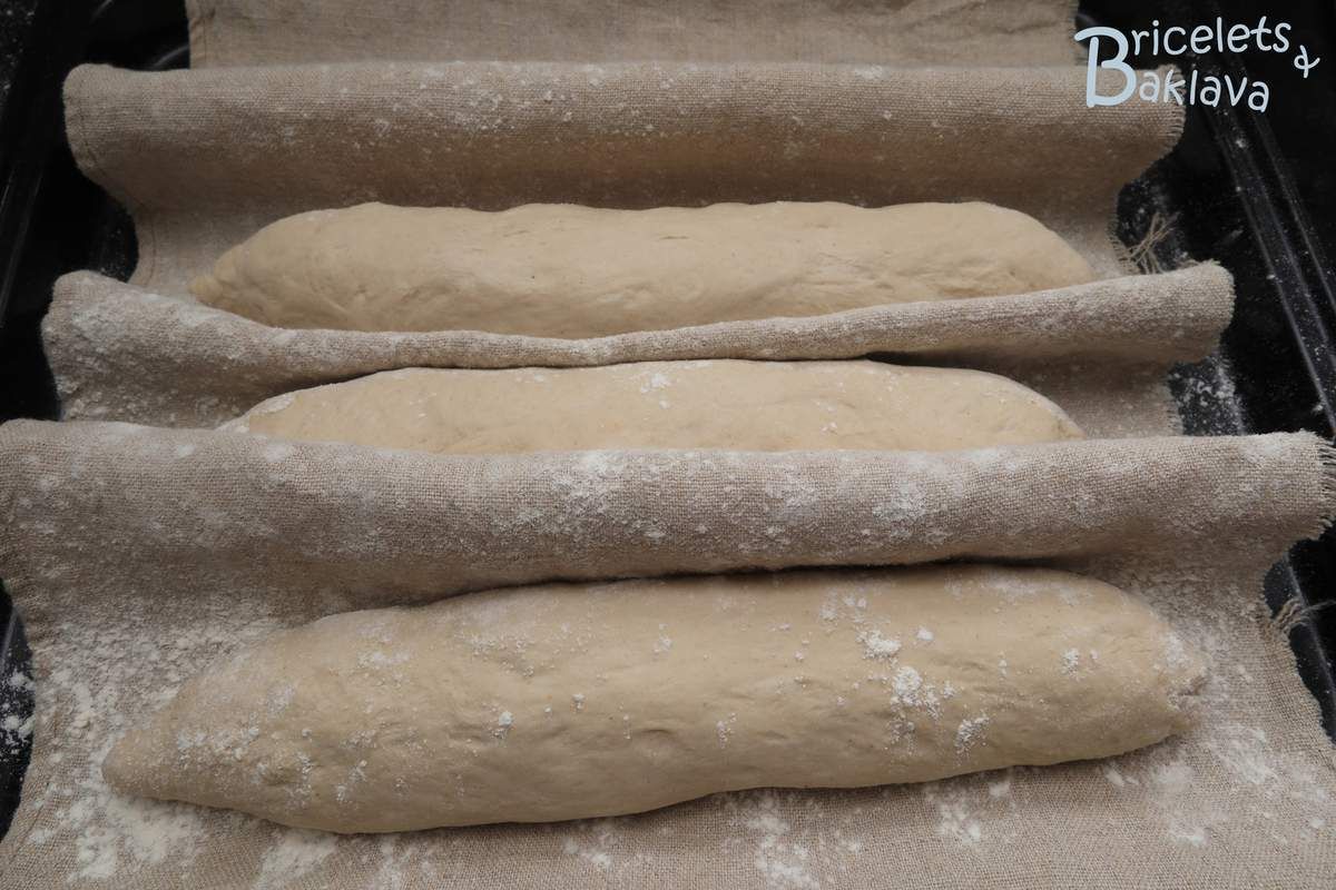 Voici donc la recette de ma baguette, vraiment pas compliquée à réaliser. Je sais, vous allez me dire : elles sont trop courtes pour des baguettes ! Vous avez raison, elles pourraient être rallongées mais c’est la dimension de mon four qui en a décidé ainsi.