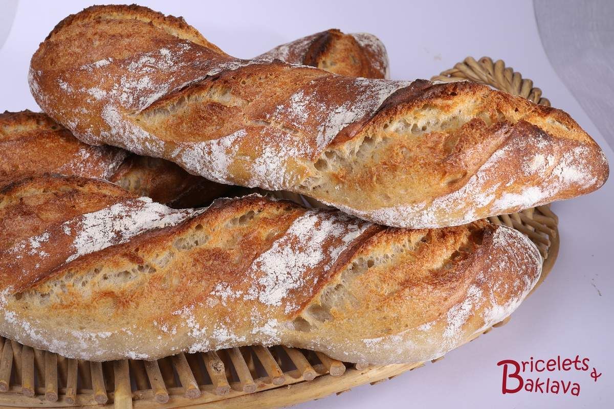 Pour commencer, je confectionne la veille une poolish, sorte de levain rapide. Après quelques heures de fermentation, je pétris ma pâte, je la laisse lever un peu et hop, je la stocke au frigo pour la nuit. Elle pourra même y rester jusqu’à 24 heures. Et le lendemain, je n’ai plus qu’à façonner mes pains et les enfourner. Cette méthode permet de diminuer la quantité de levure, d’augmenter les saveurs ainsi que la conservation et en plus c’est vous qui l’avez fait.