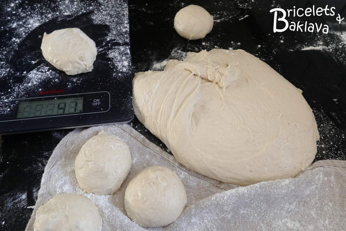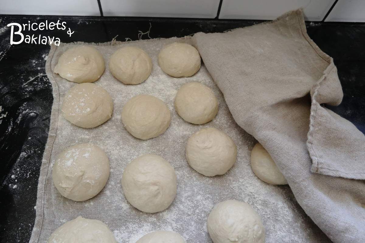 Bouler les pâtons et laisser reposer 15 minutes à température ambiante, sous un torchon humide.
