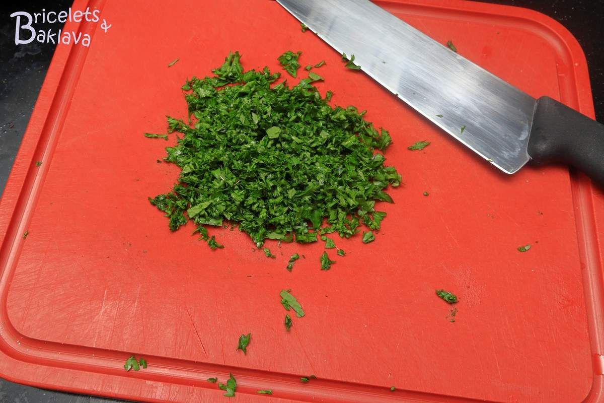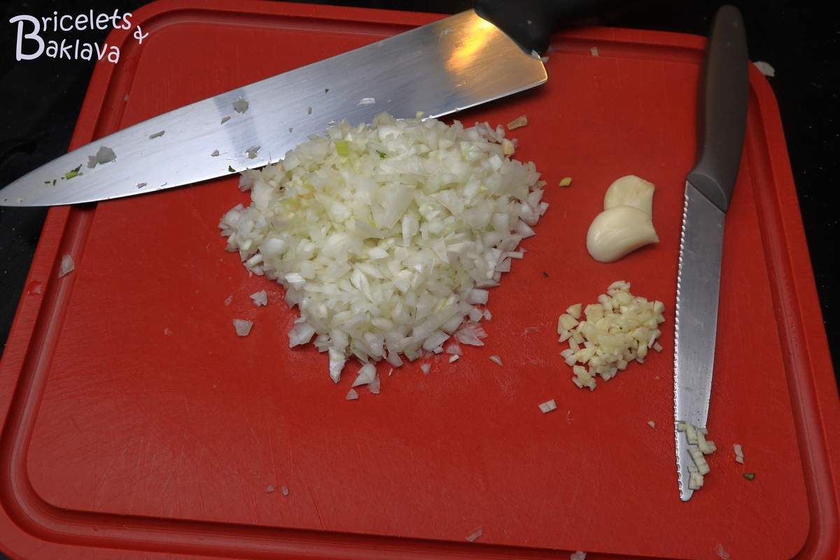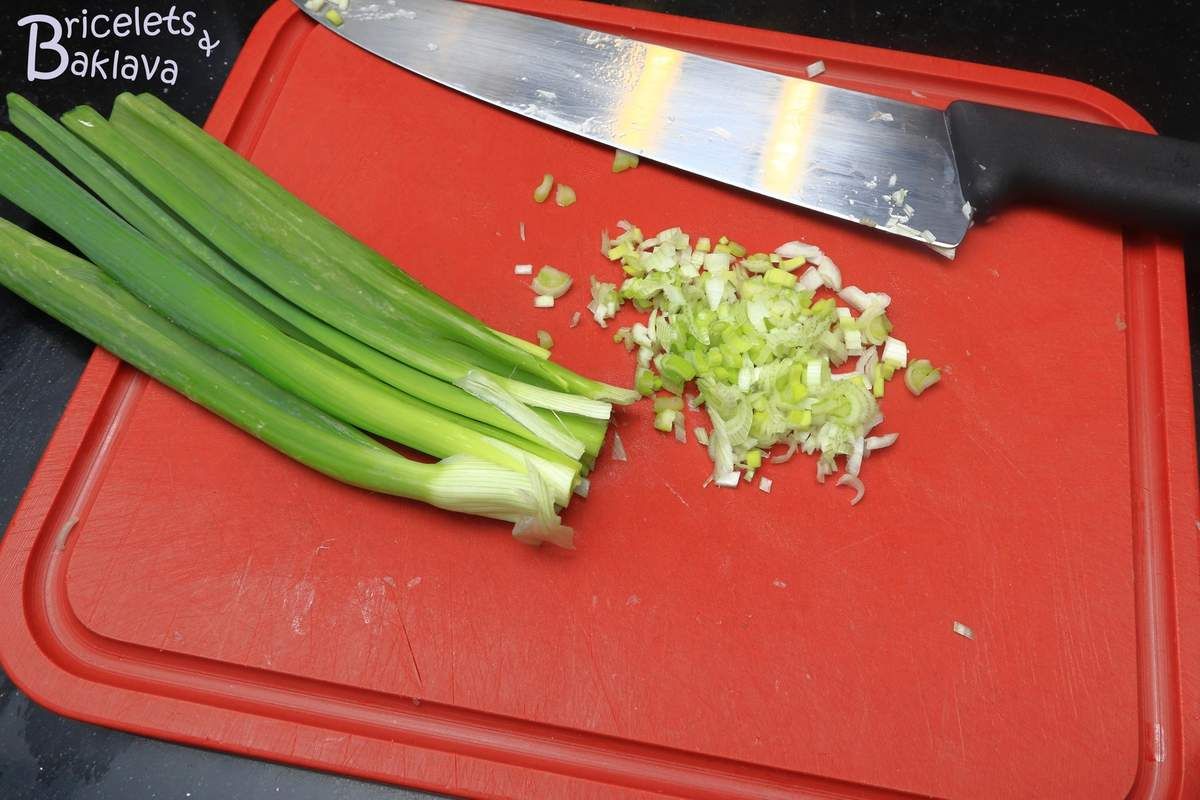 Pendant la cuisson, hacher finement 2 oignons blancs.