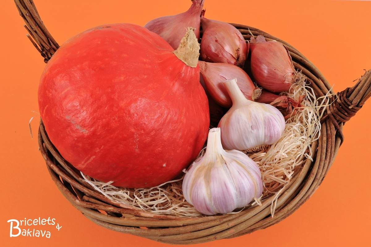 Pour cette recette j’ai utilisé un potimarron mais toutes les variétés de courge feront l’affaire. Le potimarron est une variété de petite courge de l’espèce « Cucurbita Maxima », son fruit a une forme de poire, sa couleur est d’un beau rouge brique, sa saveur légèrement douce rappel le goût des marrons et sa chair est particulièrement crémeuse. À la différence du potiron, il n'est pas nécessaire de retirer la peau du potimarron car elle reste très tendre après cuisson.