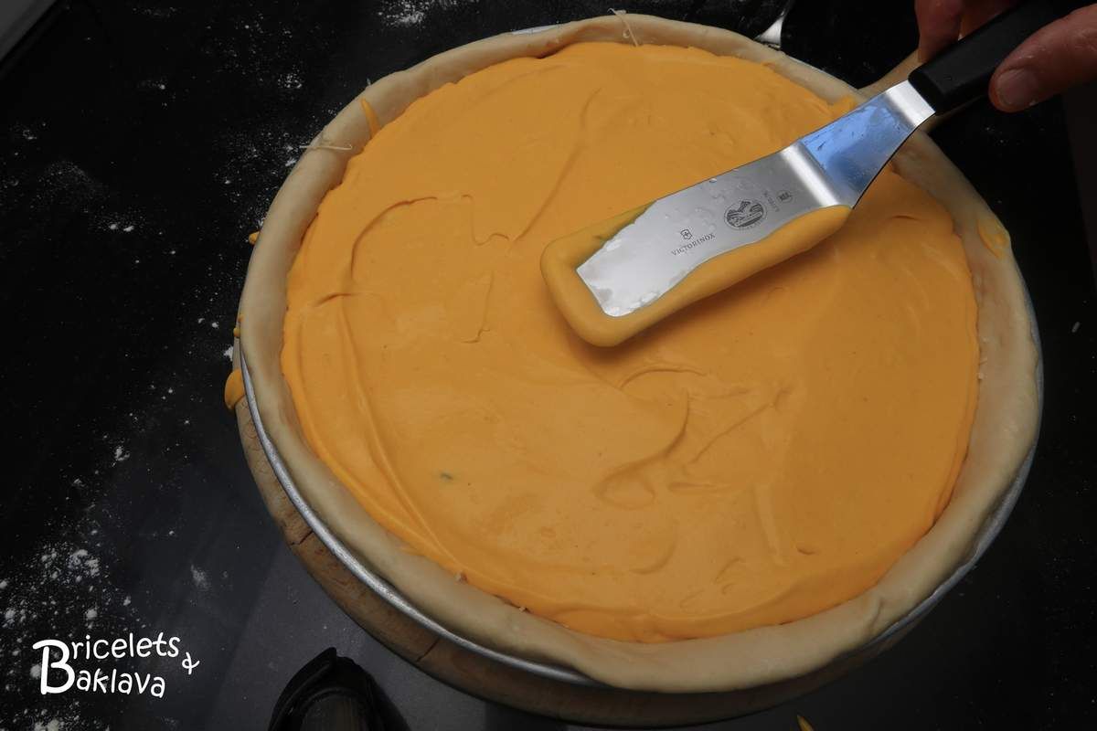 Ajouter encore le Gruyère râpé et verser par-dessus la purée de potimarron.