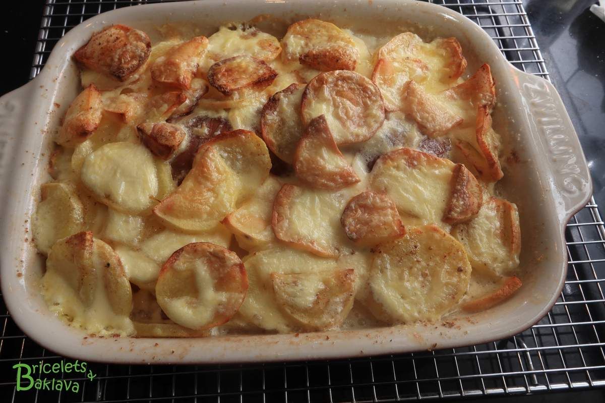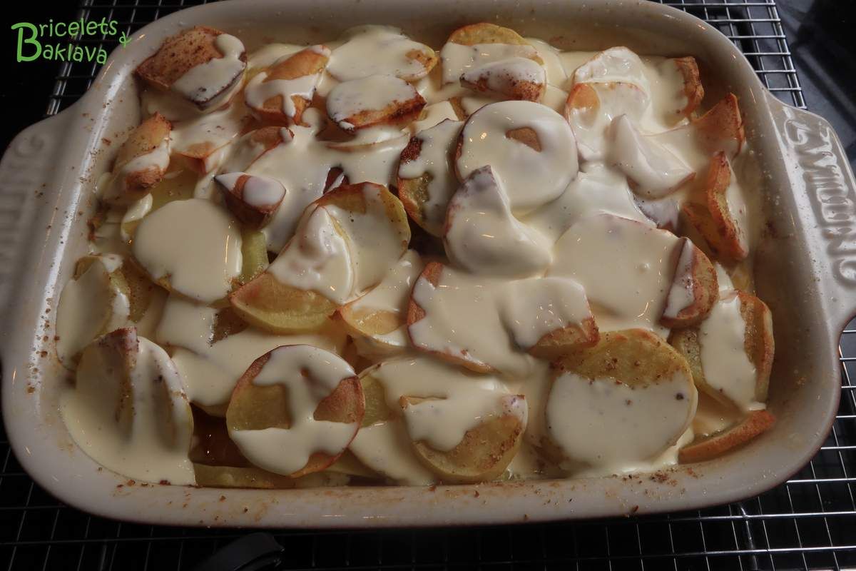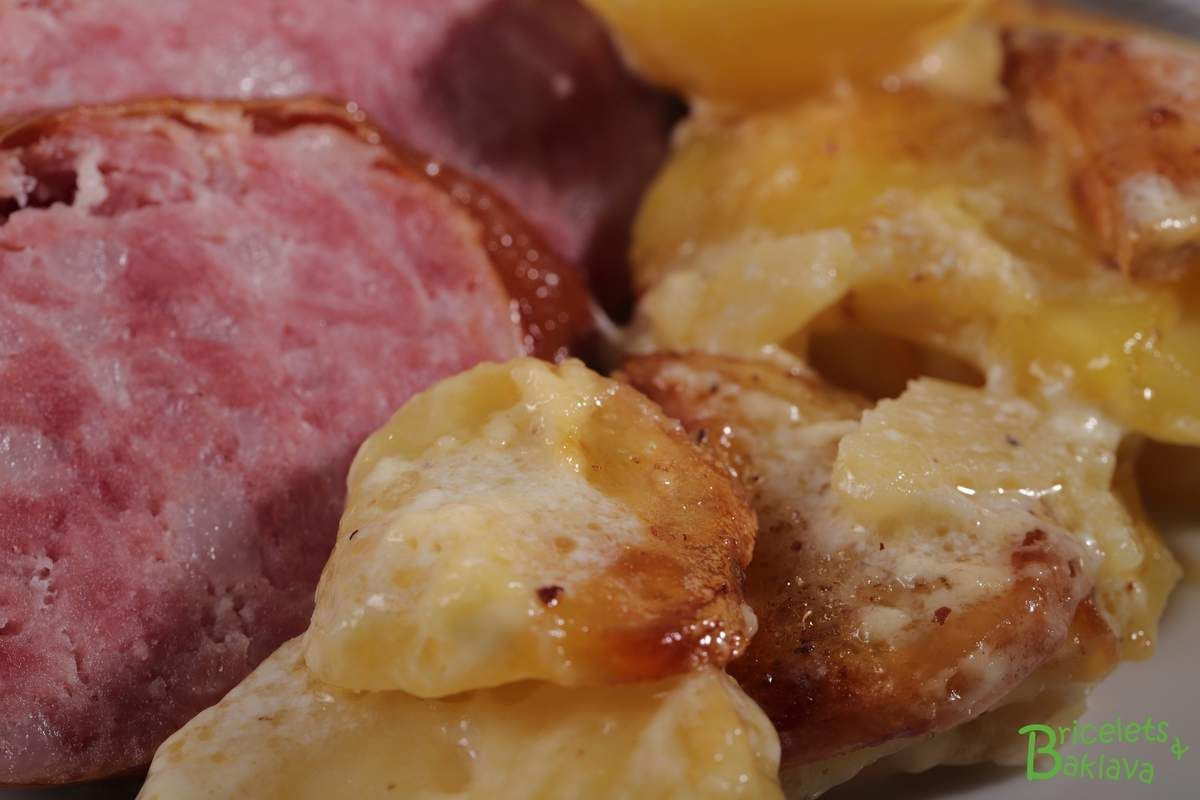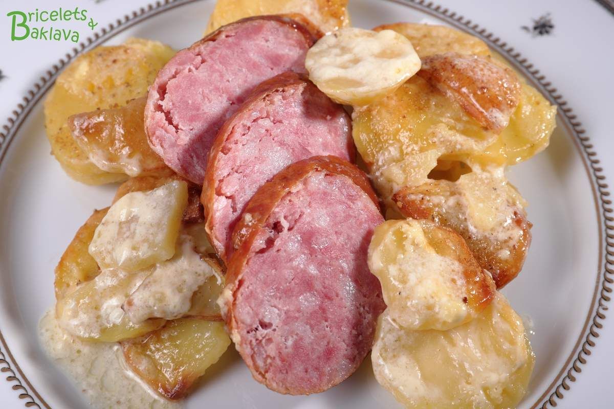 Mais j’aimerais quand même vous dire que ce plat est d’une harmonie indescriptible, un véritable concerto, ces pommes de terre qui gratinent dans le bouillon et qui s’imprègnent du jus du saucisson, c’est divin, il faut y goûter une fois. Et la double crème par-dessus qui apporte sa touche finale, une symphonie.