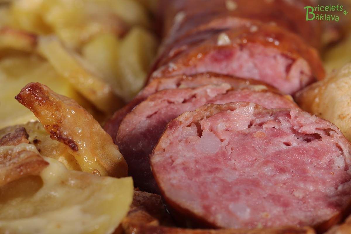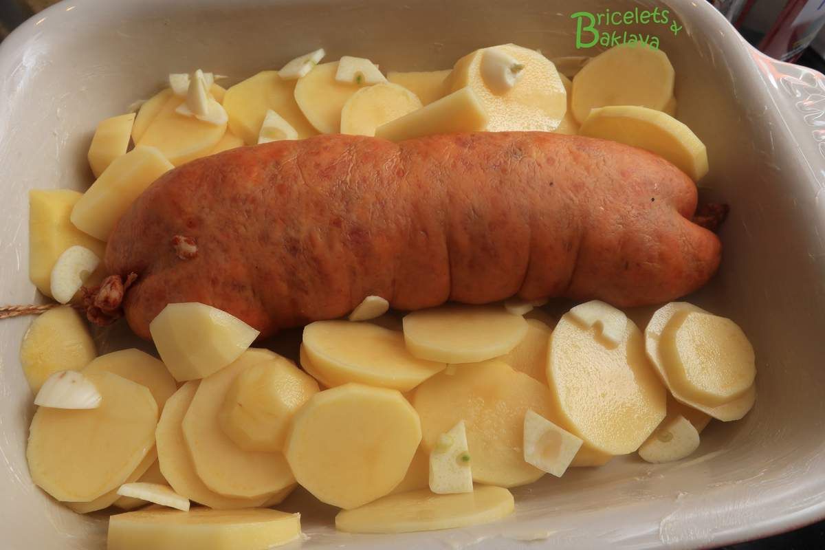 Recette pour environ 4 à 6 personnes, selon la grandeur de votre plat et de votre saucisson