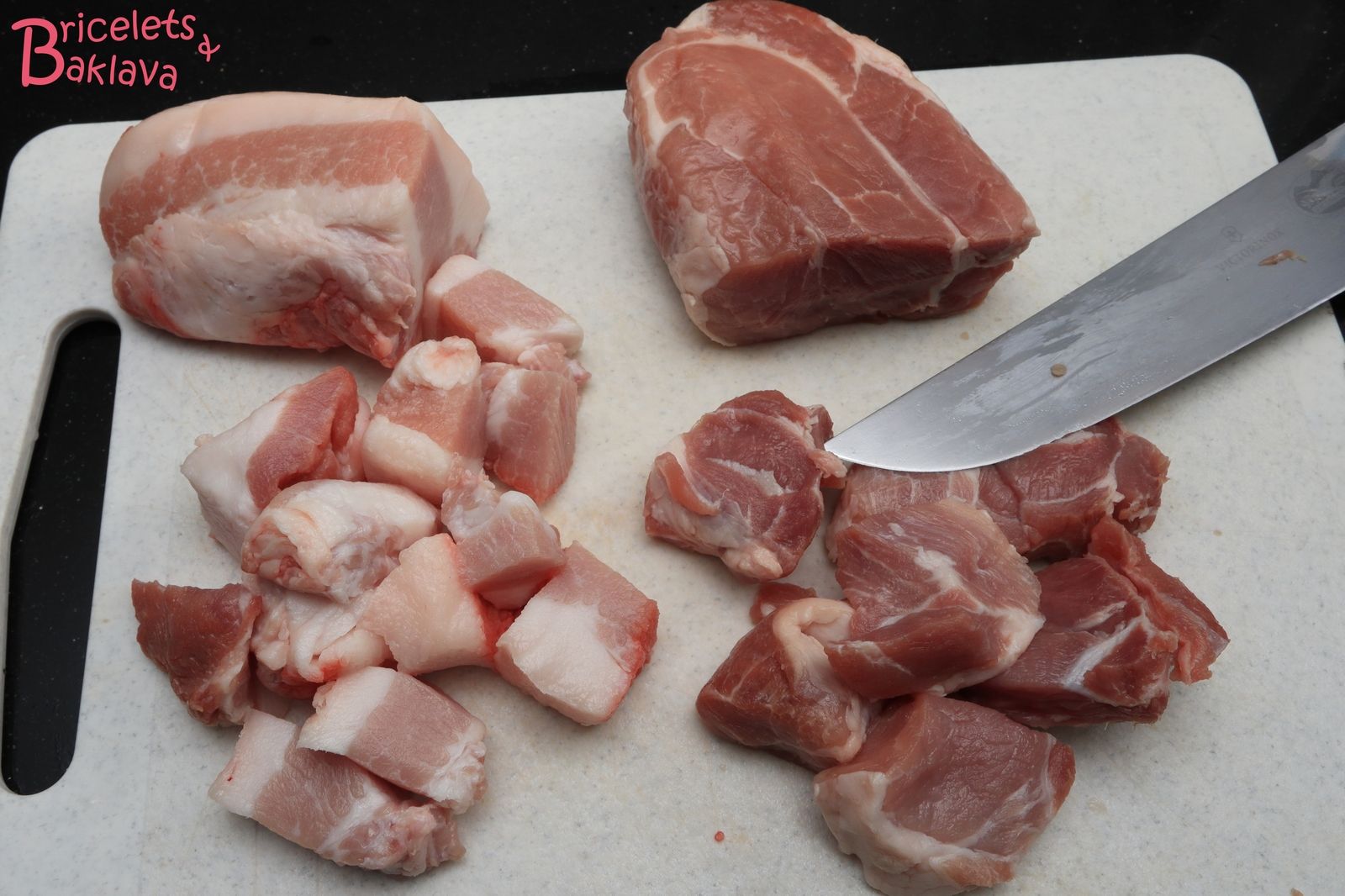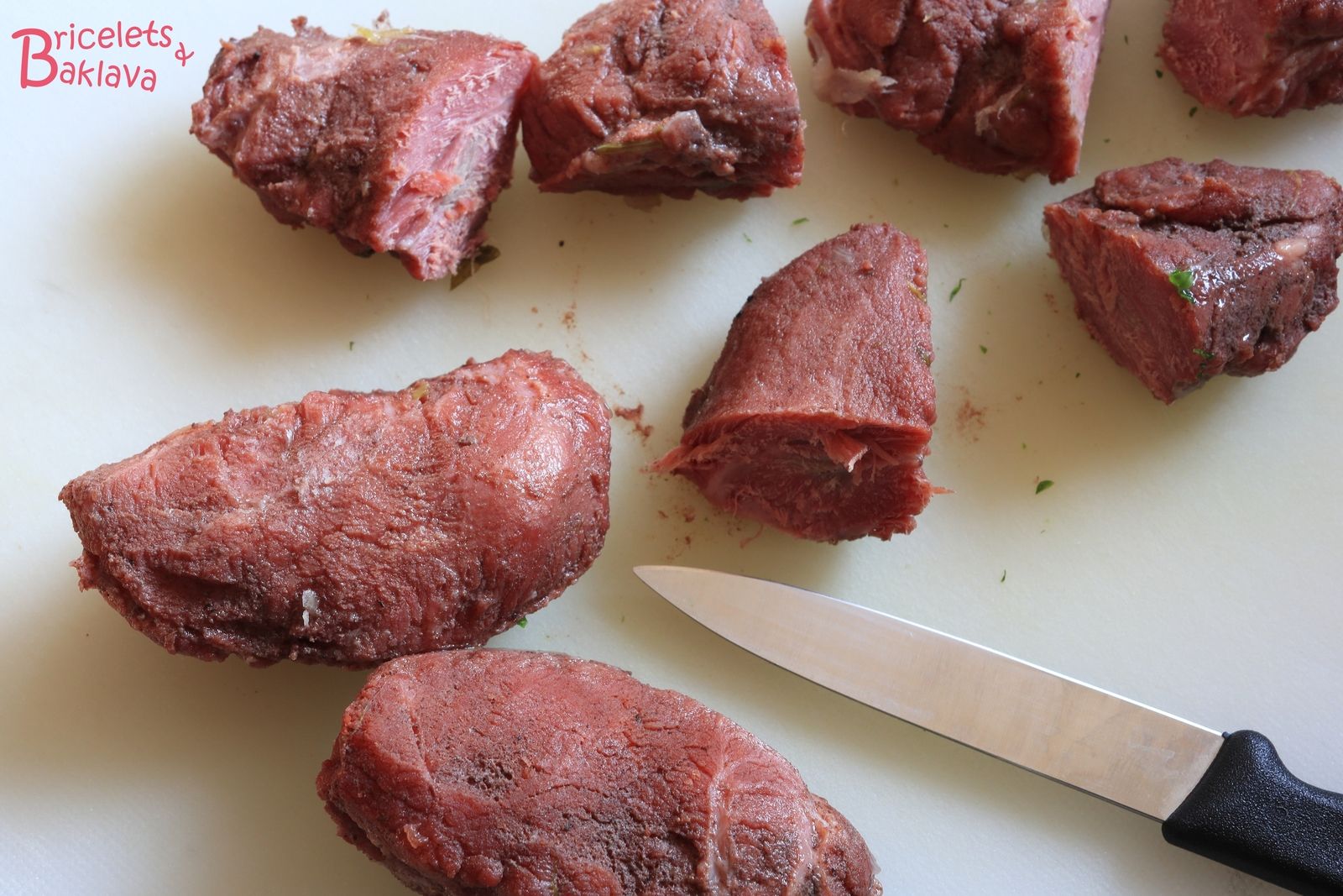 Parer les 1000 g de joues de porc, enlever les peaux et les membranes qui les recouvrent, il devrait vous en rester 900 g.