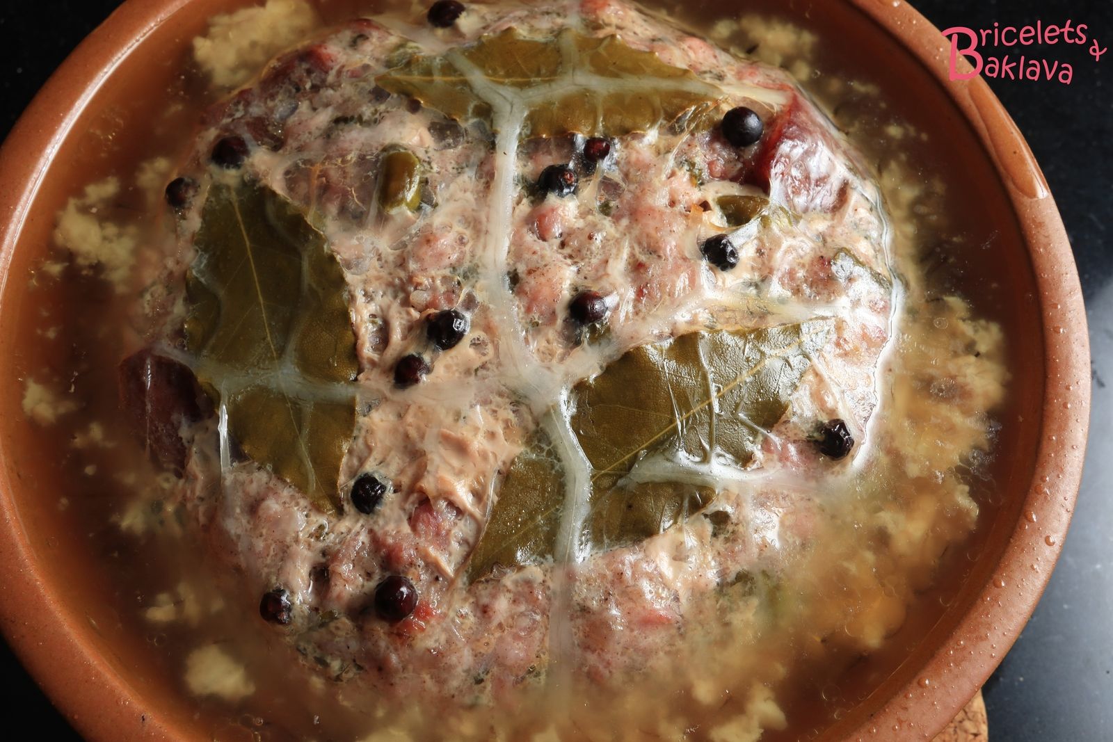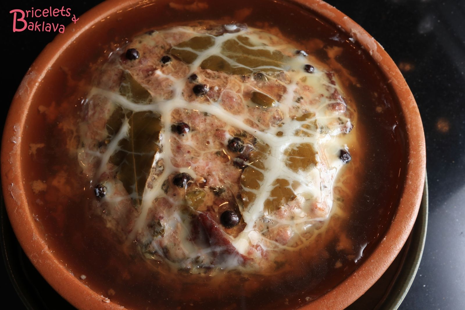 Au sortir du four, verser sur la terrine un peu de gelée bien chaude.