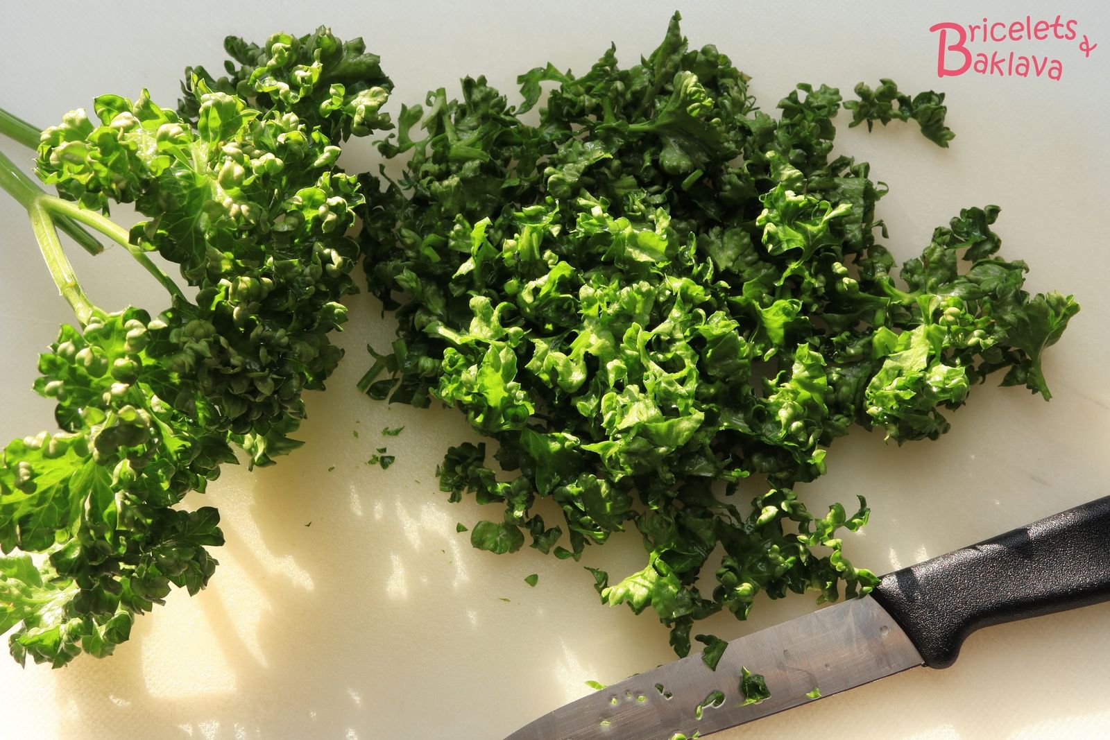 Au couteau, hacher le persil, pas trop finement.
