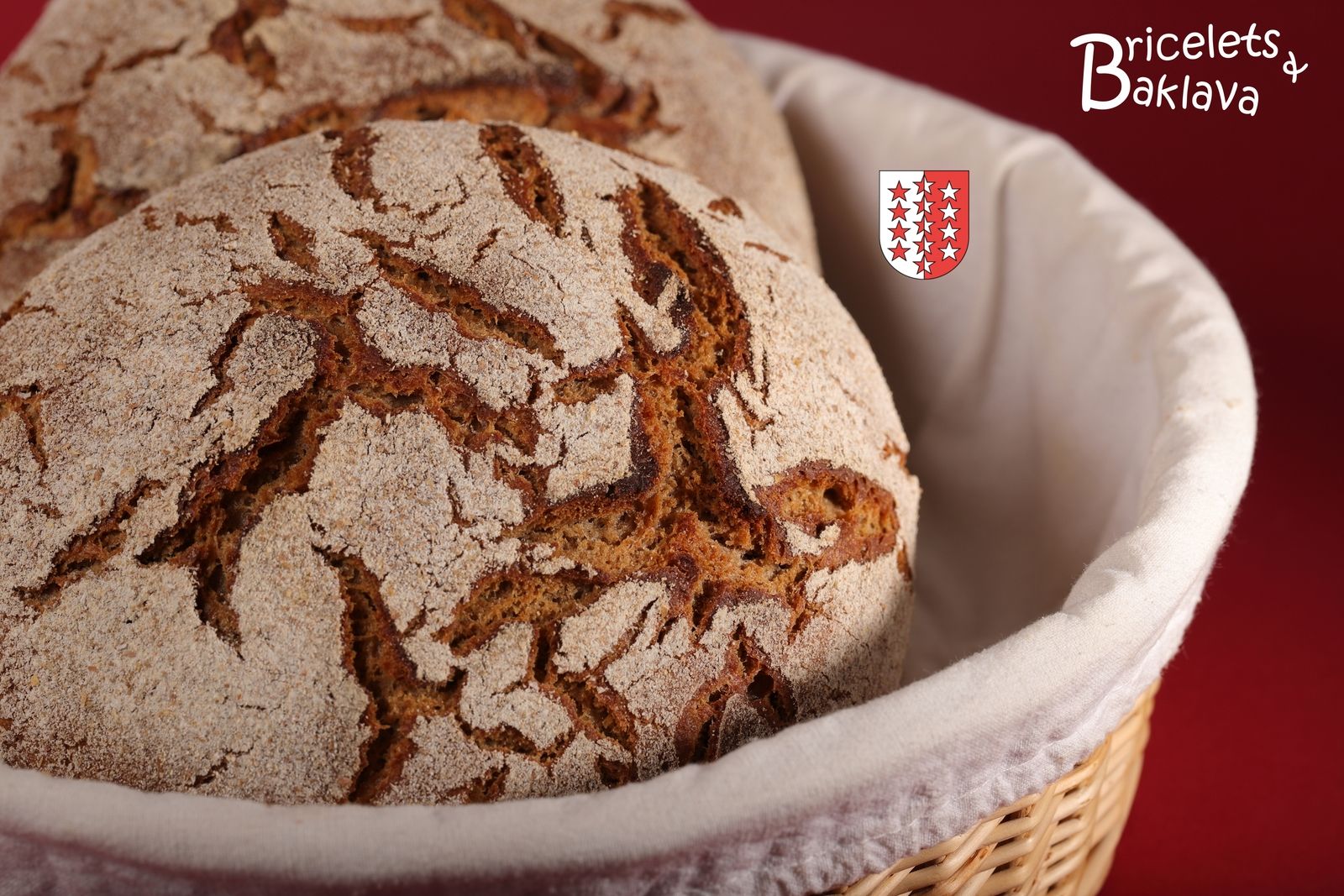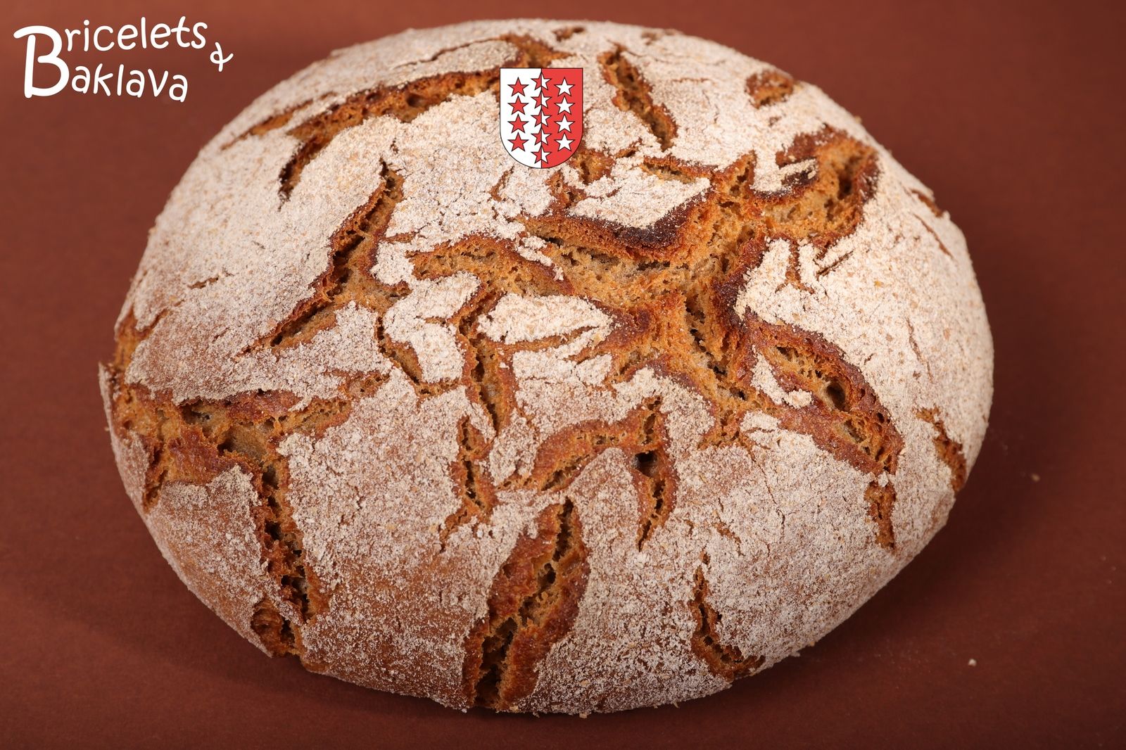 C’est un pain noir, rustique avec plein de saveur et se déguste très souvent avec du beurre, quelques rebibes de fromage d’alpage, de la viande séchée ou du petit lard sec. Il va sans dire qu’à ce stade un verre de fendant est indispensable.