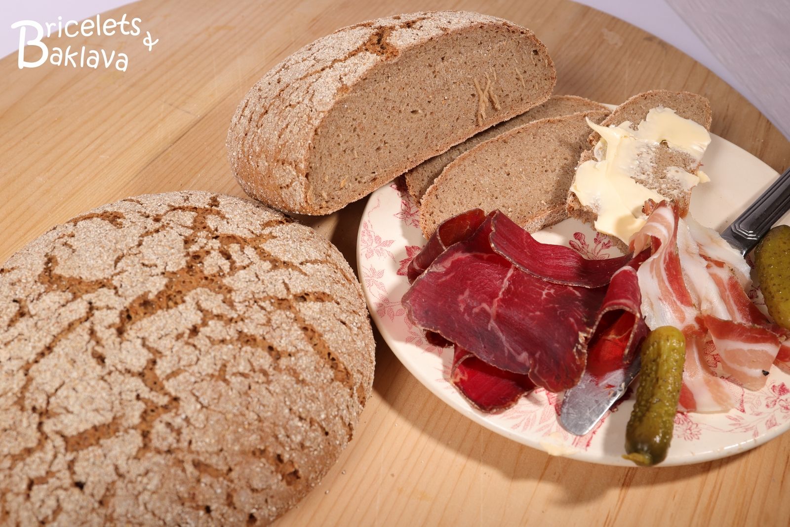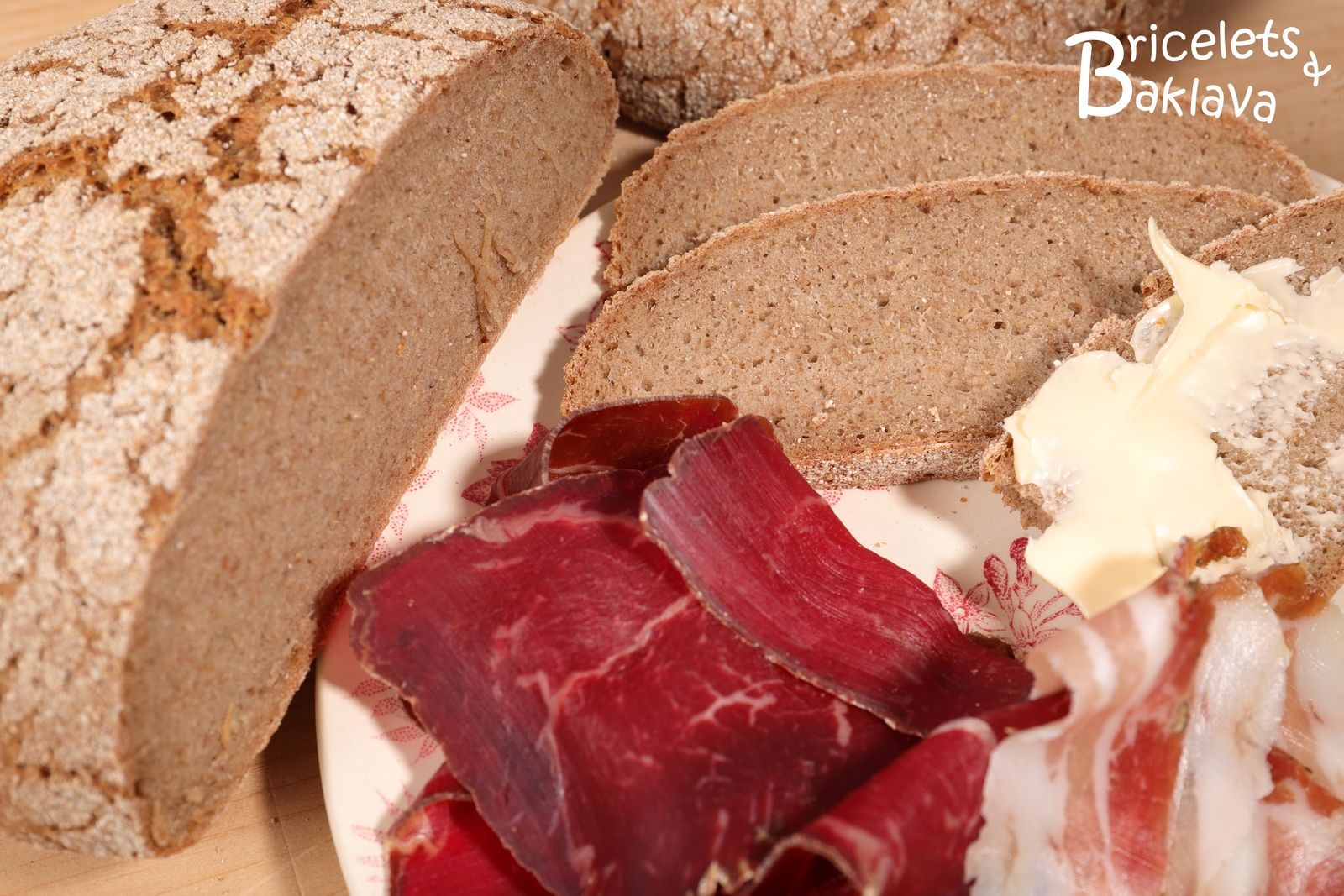 La difficulté avec la farine de seigle est qu’elle ne contient que très peu de gluten, c’est pourquoi le véritable pain valaisan est fabriqué avec un levain-chef qui va favoriser la fermentation, le maintenir frais plusieurs jours et lui donner ses saveurs inimitables. On peut très bien réaliser ce pain avec de la levure de boulanger, je ne vous donne pas la recette ici car vous en trouverez à foison sur le net, toutes plus ou moins semblables.