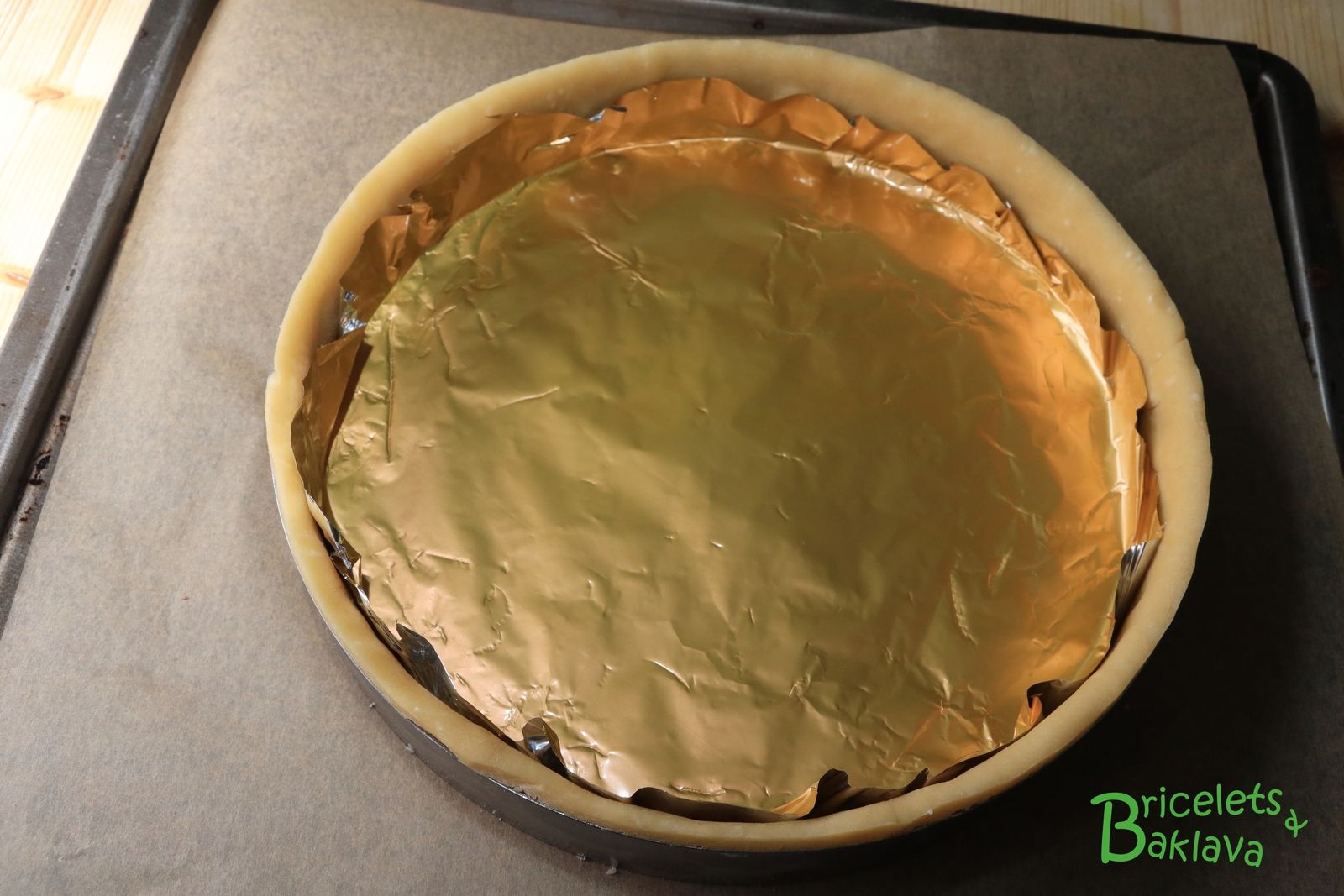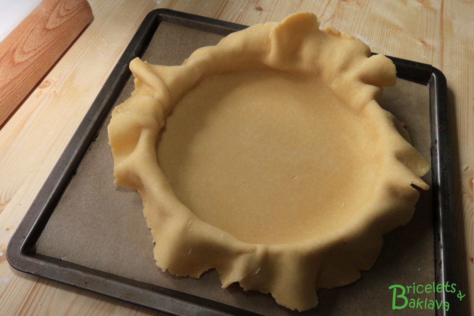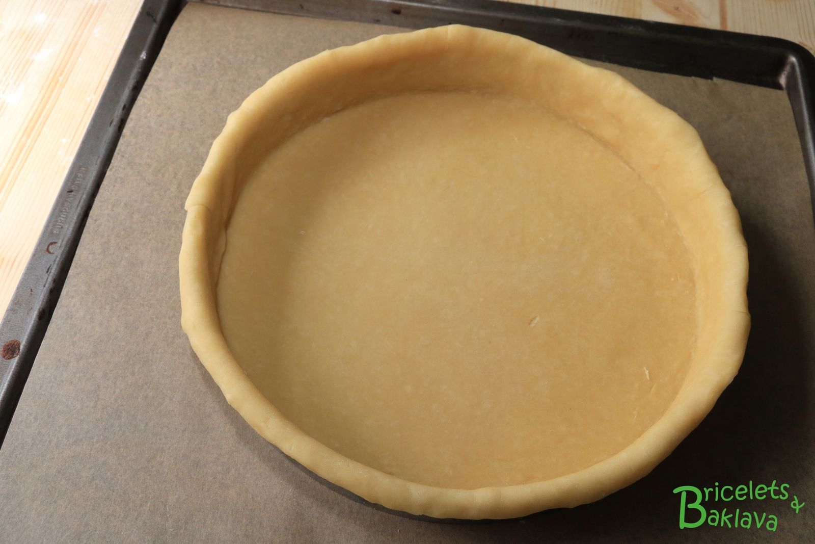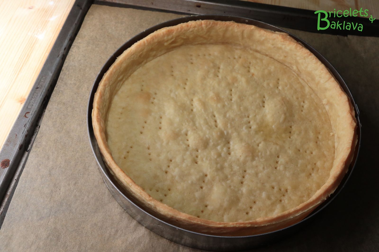 Pour réaliser cette tarte, on va tout d’abord faire une pâte brisée que l’on va cuire à blanc. De ce fait et avec une cuisson raccourcie, on va obtenir un croustillant inimitable, la pâte n’aura pas le temps de s’imbiber du liquide.