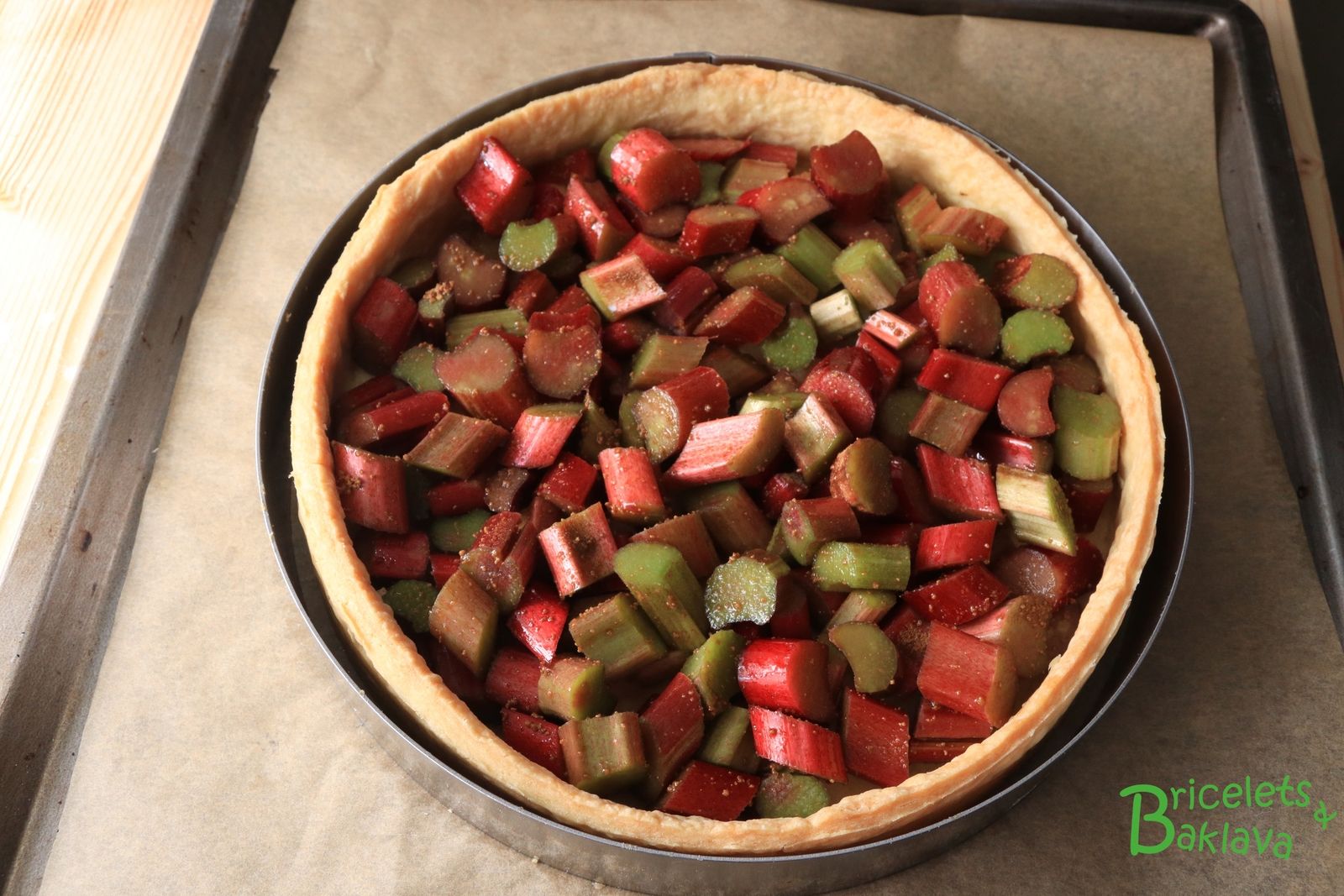 Ben barbe alors, encore de la rhubarbe. Eh oui, c’est la saison et on va en profiter avec cette excellente tarte pas comme les autres. Quand les tiges sont toutes jeunes il n'est pas nécessaire de les éplucher, c'est la peau qui va lui donner cette magnifique couleur à la cuisson. Et je ne fais non plus pas dégorger dans le sucre car elle va perdre son précieux nectar et tous ses arômes par la même occasion.