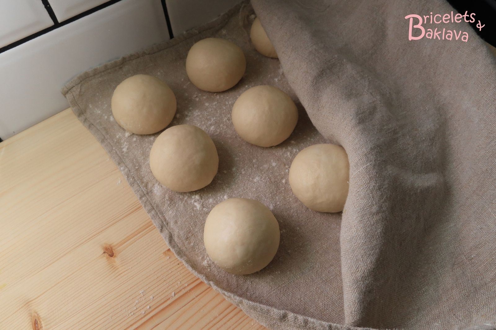 les bouler et les laisser lever sous un torchon légèrement humide, ceci pendant 30 minutes, à température ambiante. Ici la pâte encore froide va continuer à lever mais toujours tranquillement.