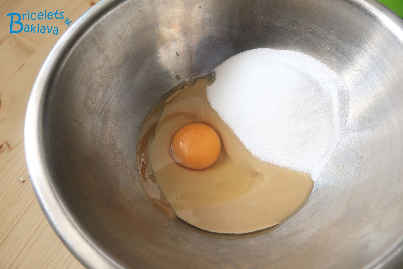 Dans un saladier, mélanger le tahine avec l’œuf et le sucre.