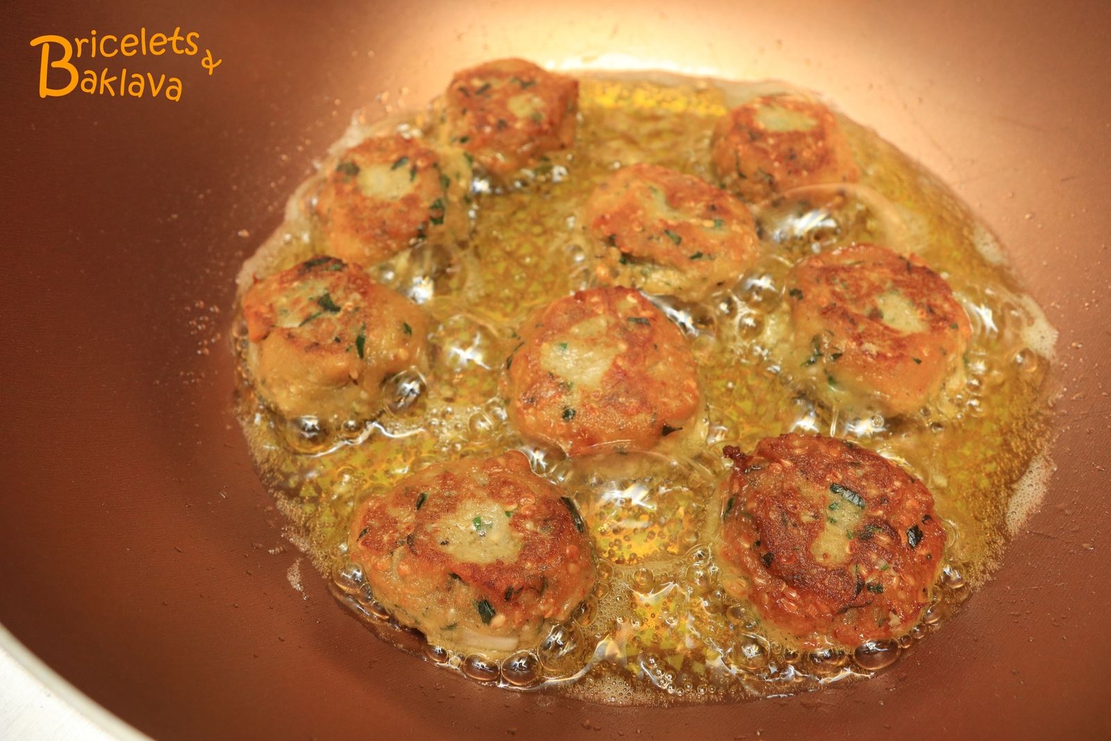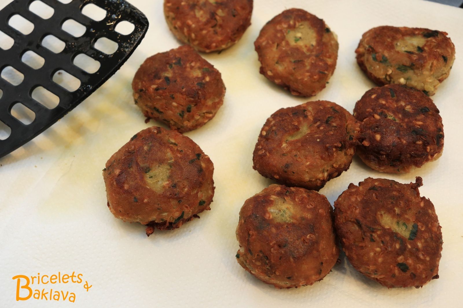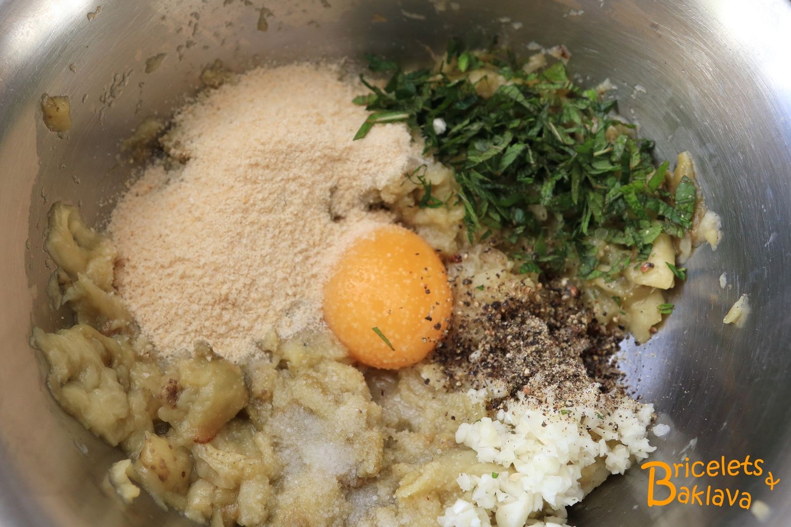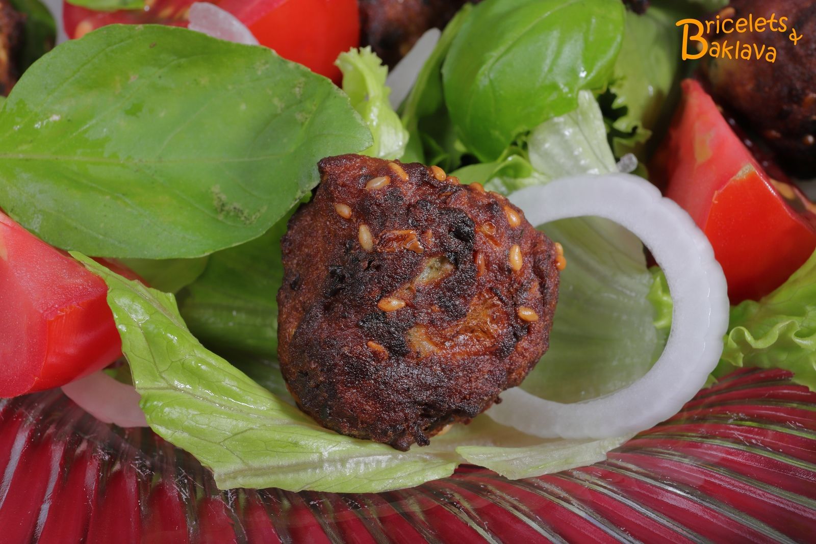 Mais aujourd’hui je vous propose la version végétarienne. Ces boulettes étaient confectionnées spécialement lors du carême dans la région d’Aintab, patrie de ma mère. La viande était remplacée par de l’aubergine assaisonnée d’herbes et d’épices et frite à l’huile d’olive. Ces petites boulettes sont une pure merveille, à grignoter sur le pouce, comme mezzé, sur une salade estivale et même à l’apéritif.