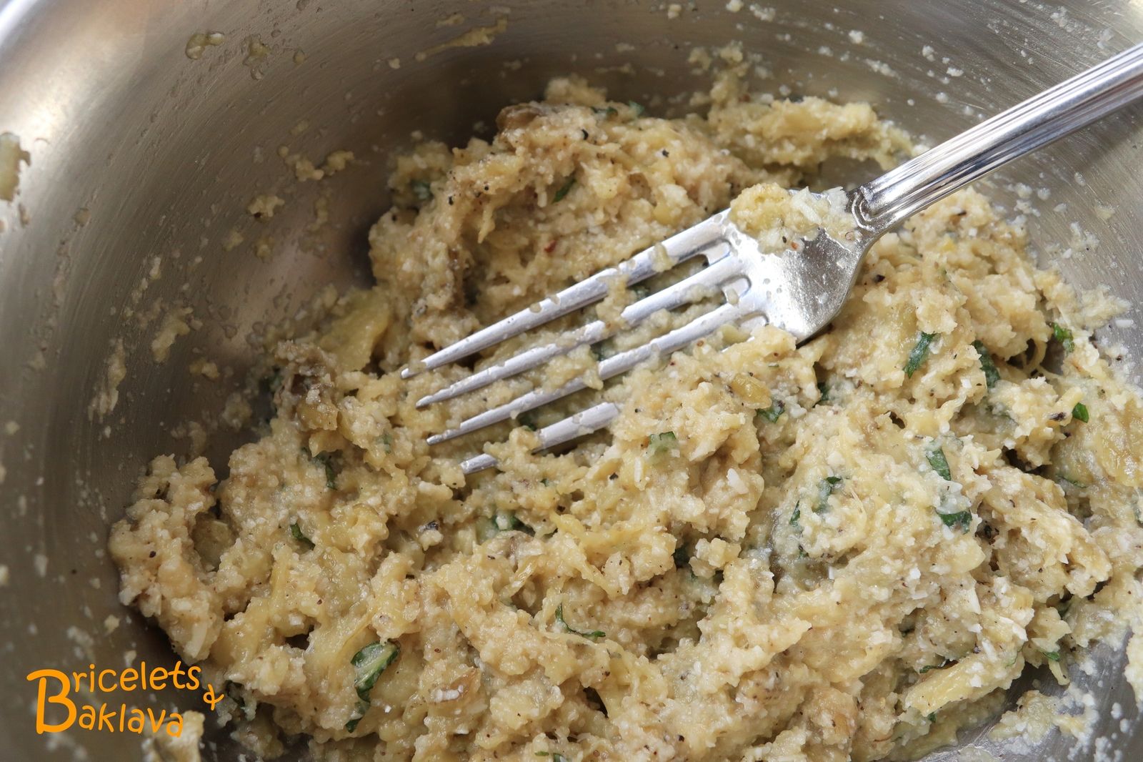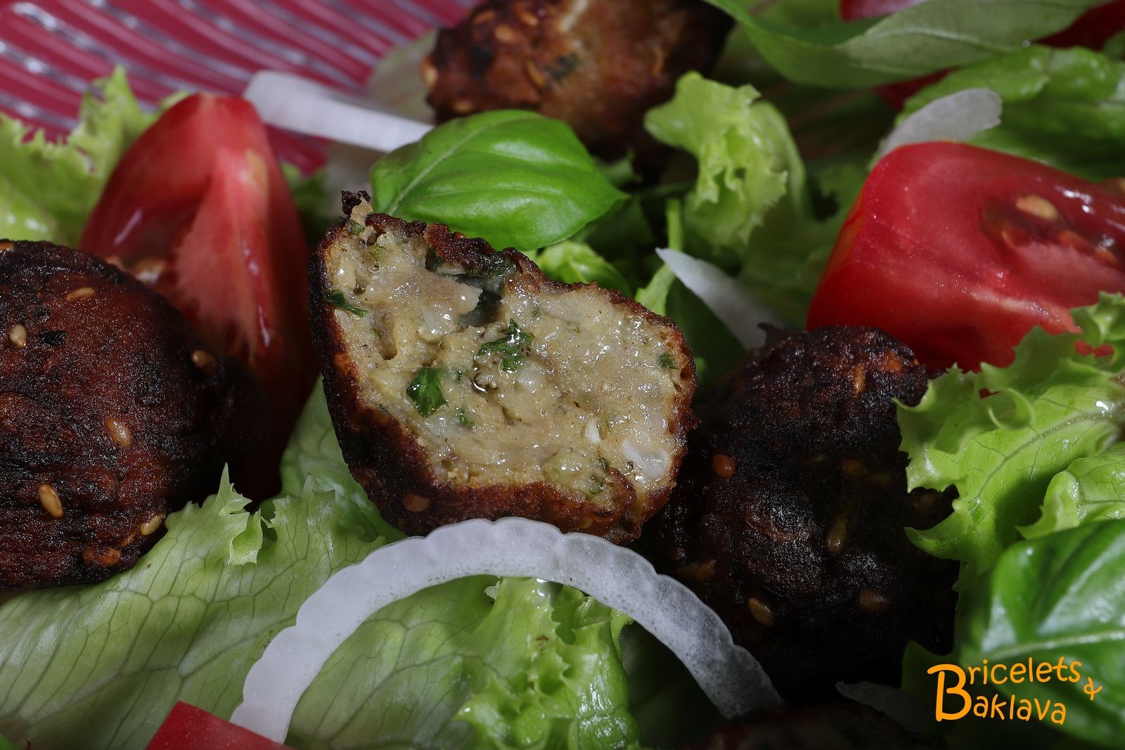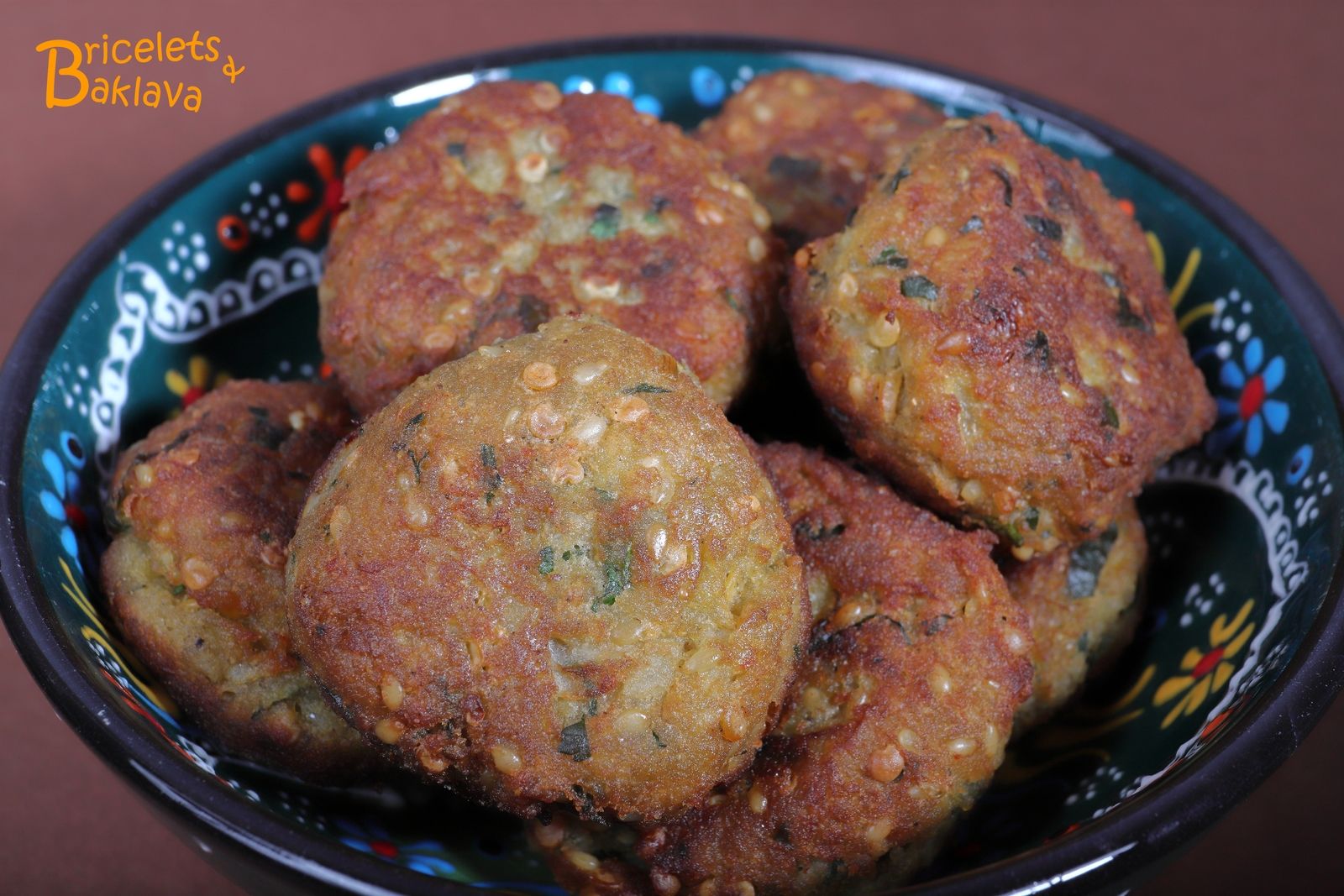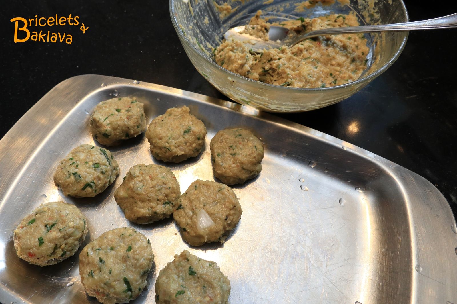 Mais aujourd’hui je vous propose la version végétarienne. Ces boulettes étaient confectionnées spécialement lors du carême dans la région d’Aintab, patrie de ma mère. La viande était remplacée par de l’aubergine assaisonnée d’herbes et d’épices et frite à l’huile d’olive. Ces petites boulettes sont une pure merveille, à grignoter sur le pouce, comme mezzé, sur une salade estivale et même à l’apéritif.