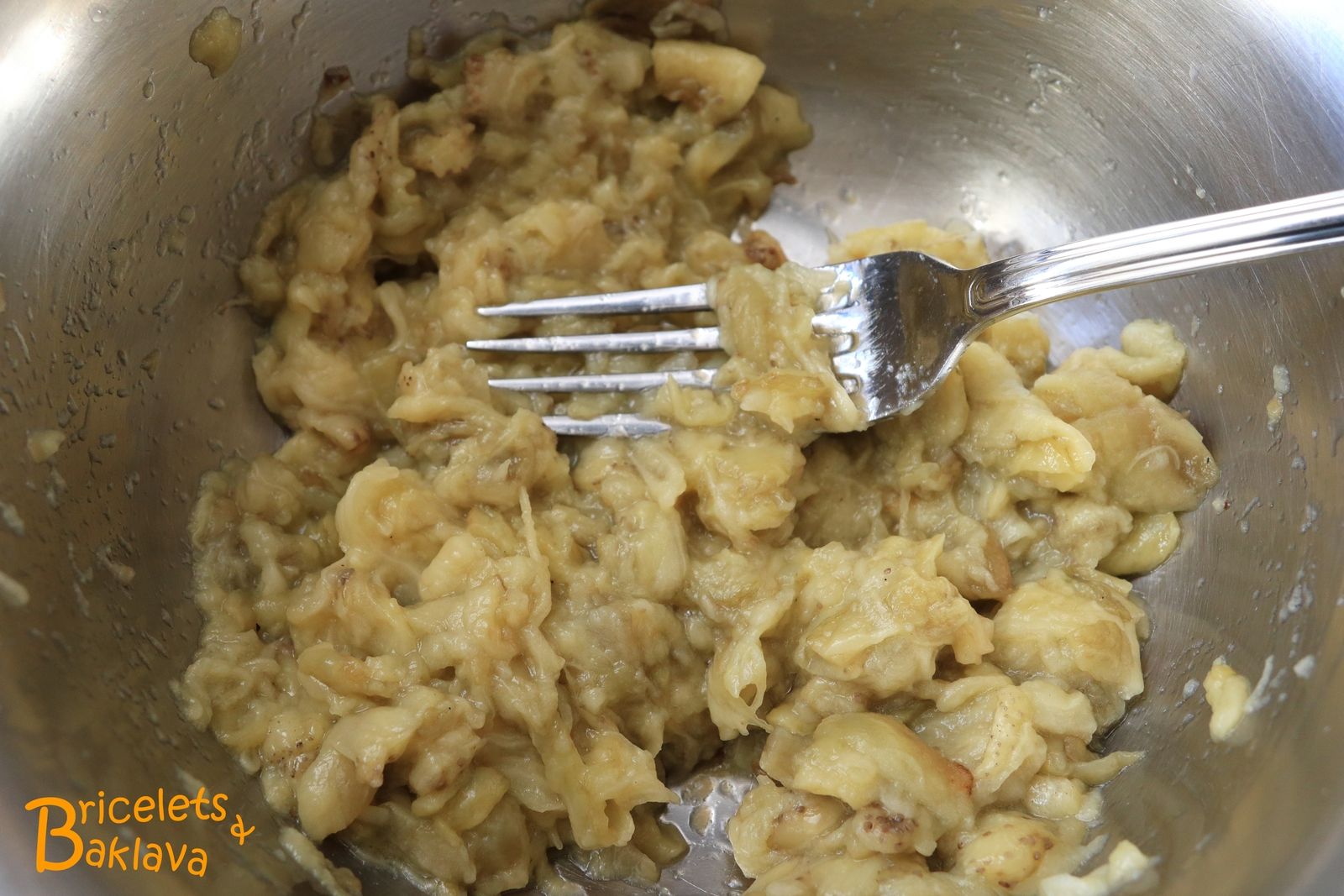 Une fois la chair d’aubergine bien égouttée, la transvaser dans un saladier et à l’aide d’une fourchette l’écraser afin d’obtenir une belle purée. Et surtout pas de mixer pour cette opération.
