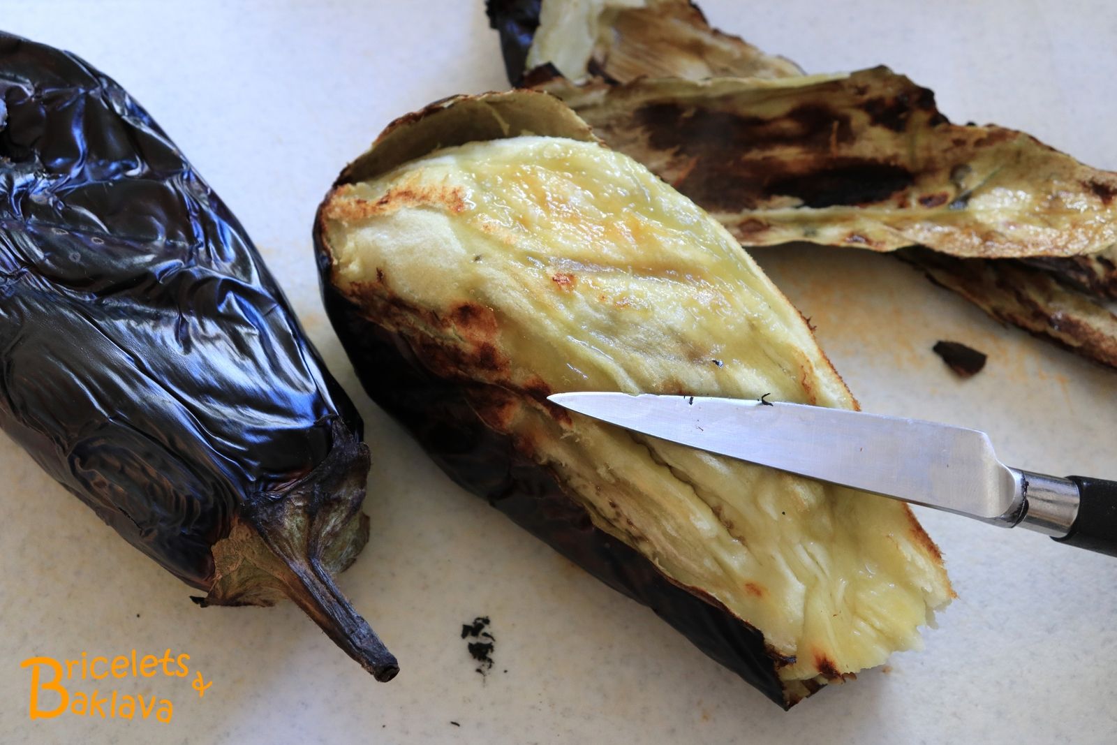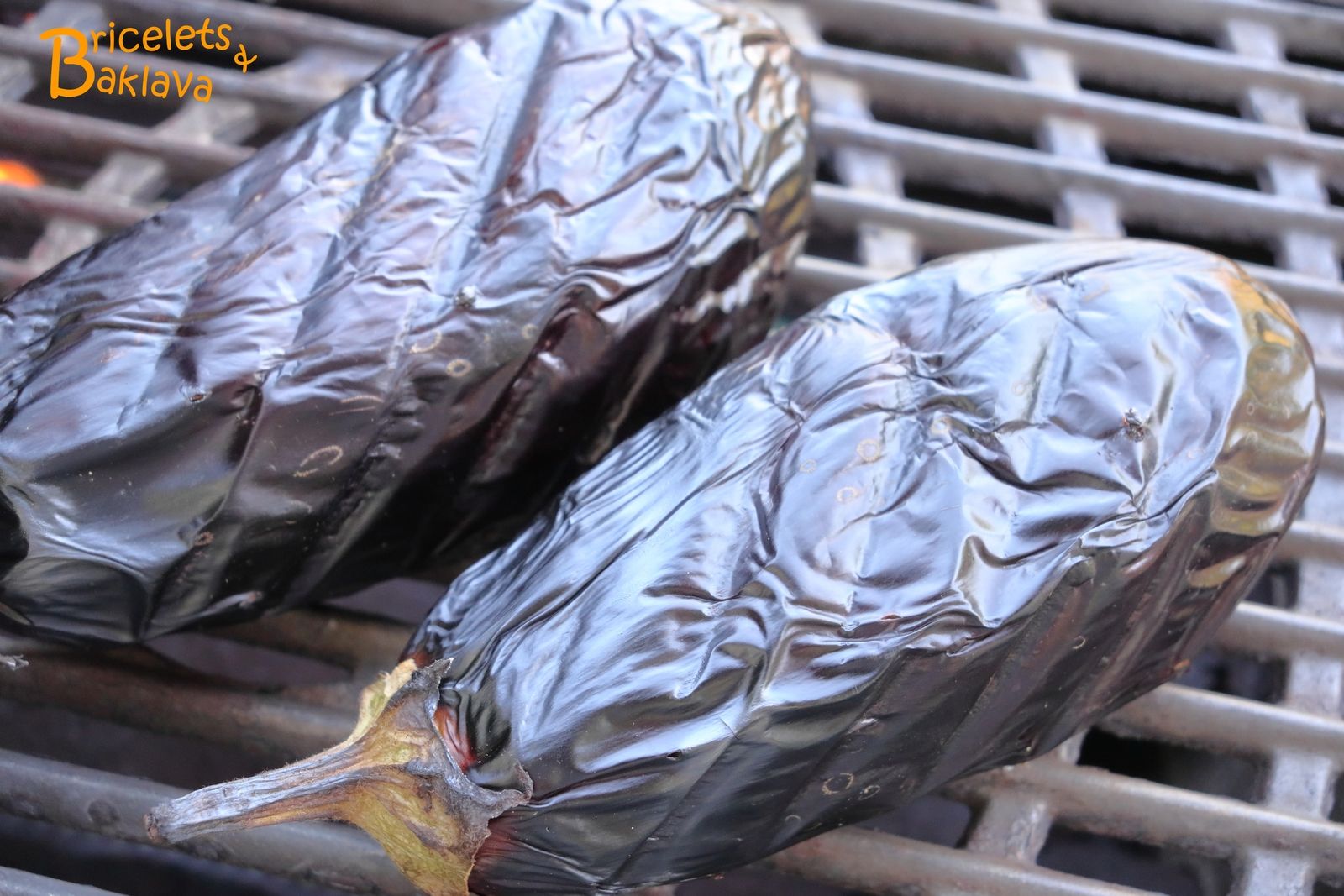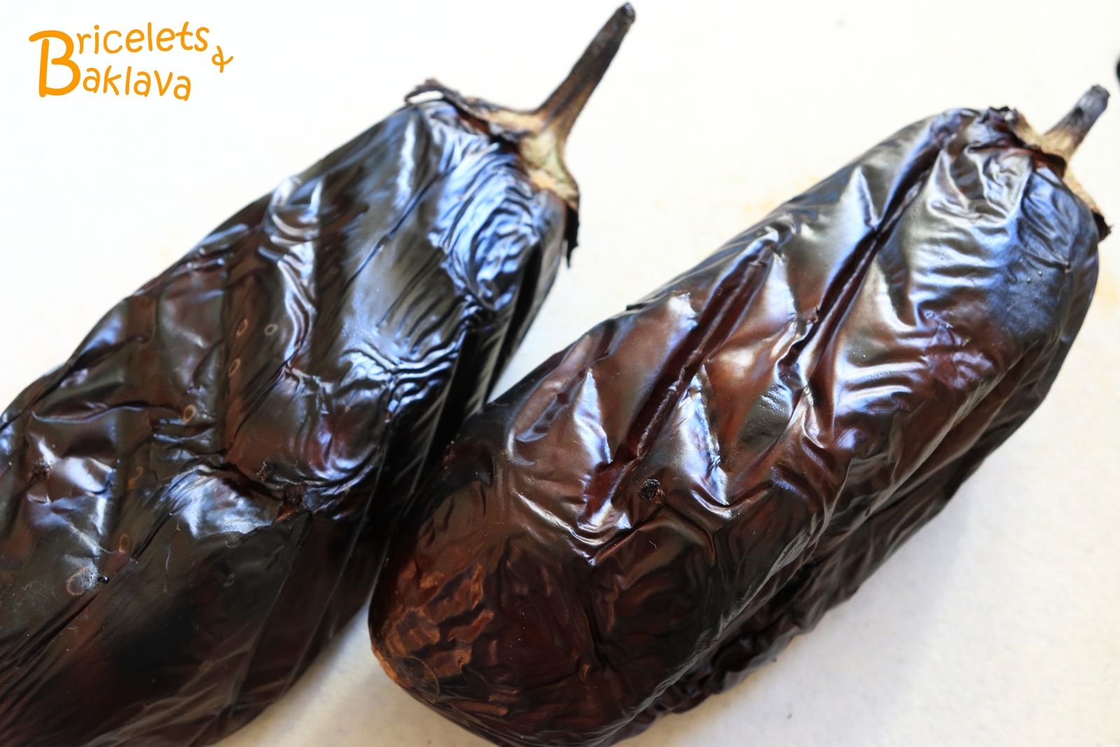 Pour cette recette, le secret sera de bien cuire les aubergines. Elles devront être non seulement bien cuites mais leur peau devra être brûlée afin de transmettre au plat cette saveur unique de fumé. Pour ce faire, il y a plusieurs méthodes, la première étant sans doute le barbecue de jardin où vous allez les faire rôtir pendant 15 à 20 minutes jusqu’à ce que la peau s’effrite et que la chair soit tendre. Autrement, il y a votre four de cuisine sur puissance maximum où elles devront cuire pendant 20 à 30 minutes.