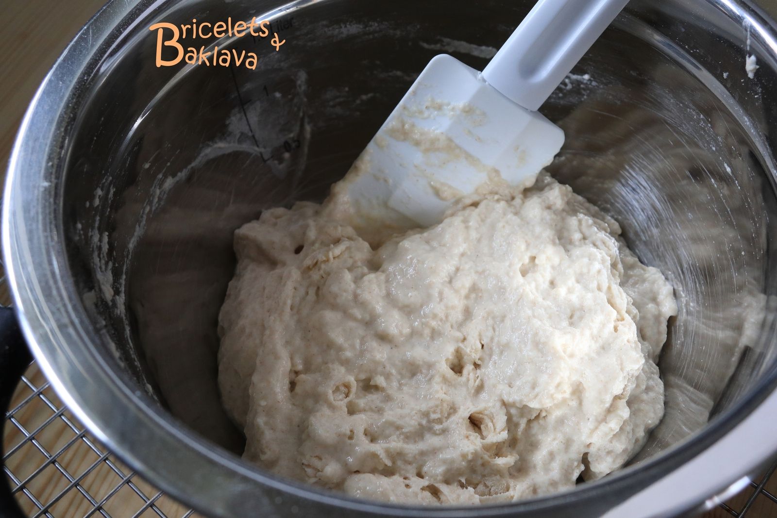 Pétrir pendant 3 minutes en 1ère vitesse ou jusqu’à ce que la pâte soit formée.