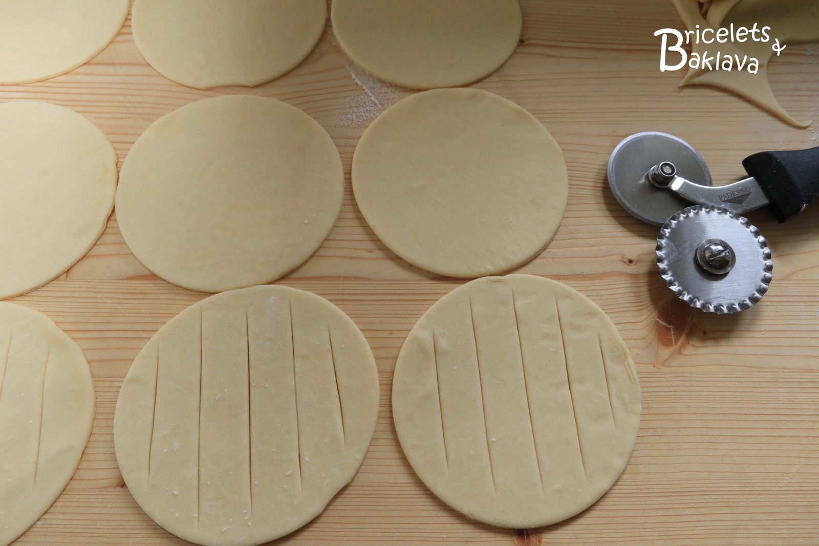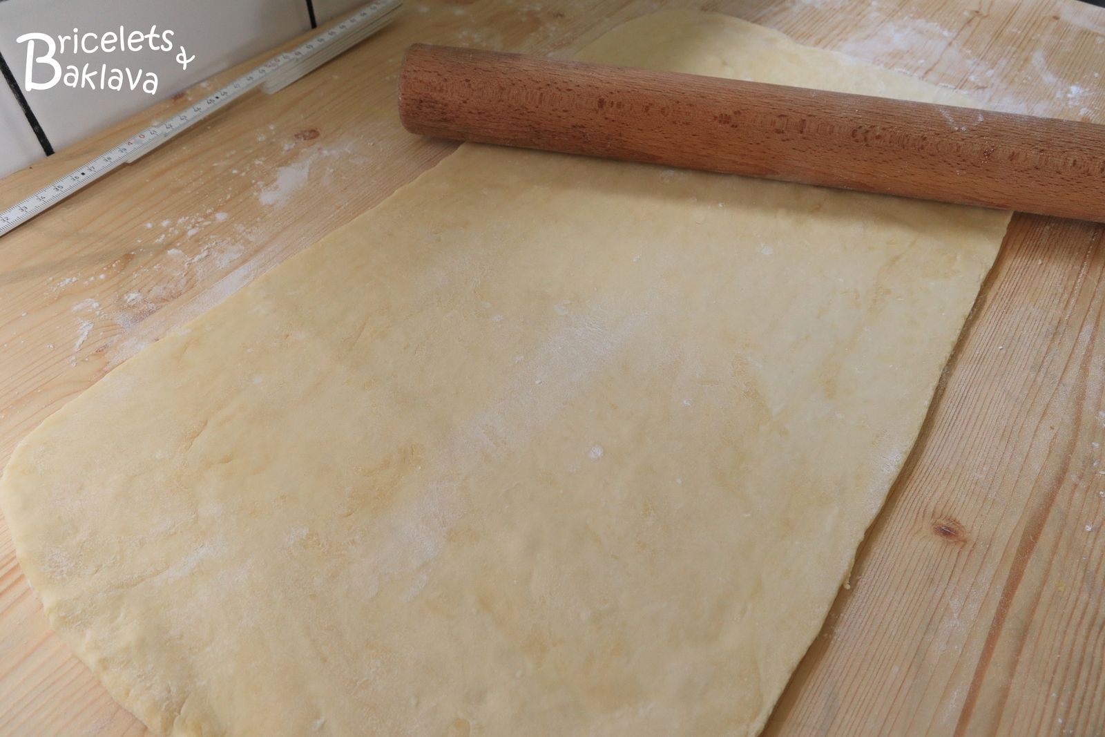 Reprendre la pâte et lui donner ¼ de tour. C'est très très important d'alterner le sens de l'abaisse entre chaque tour afin que la pâte ne se rétracte pas à la cuisson.