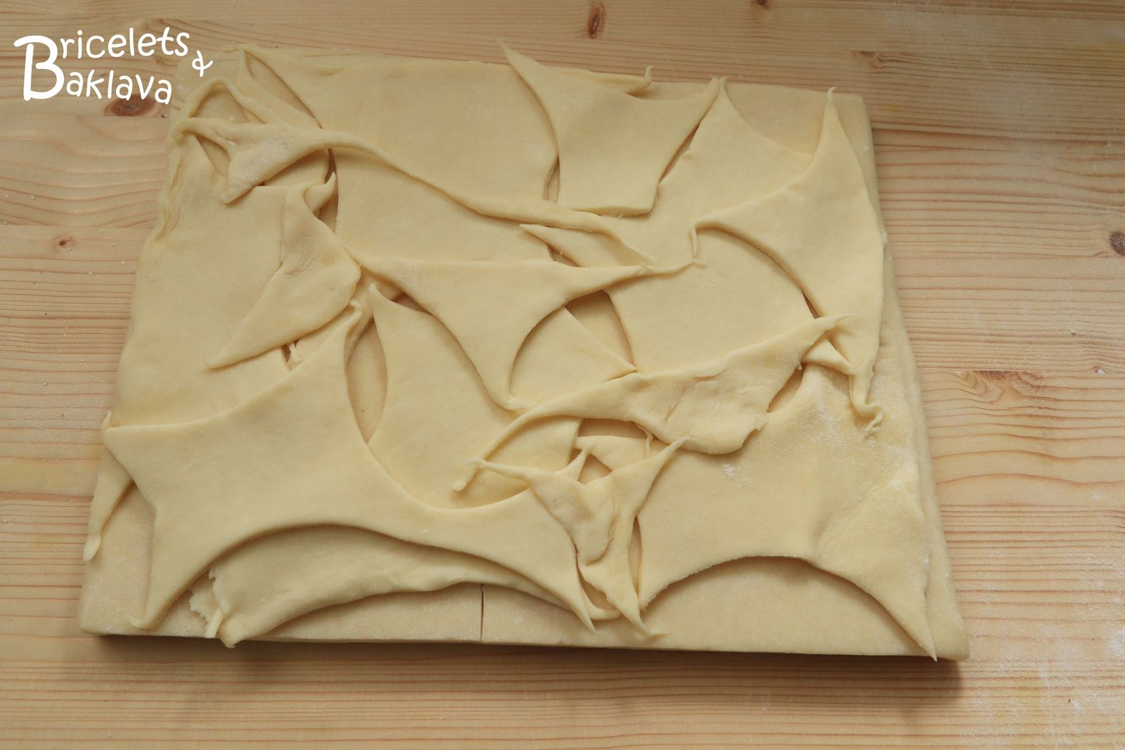 Presser un peu et retourner la pâte afin que les découpes se trouvent au-dessous. Procéder ensuite comme pour la première abaisse.