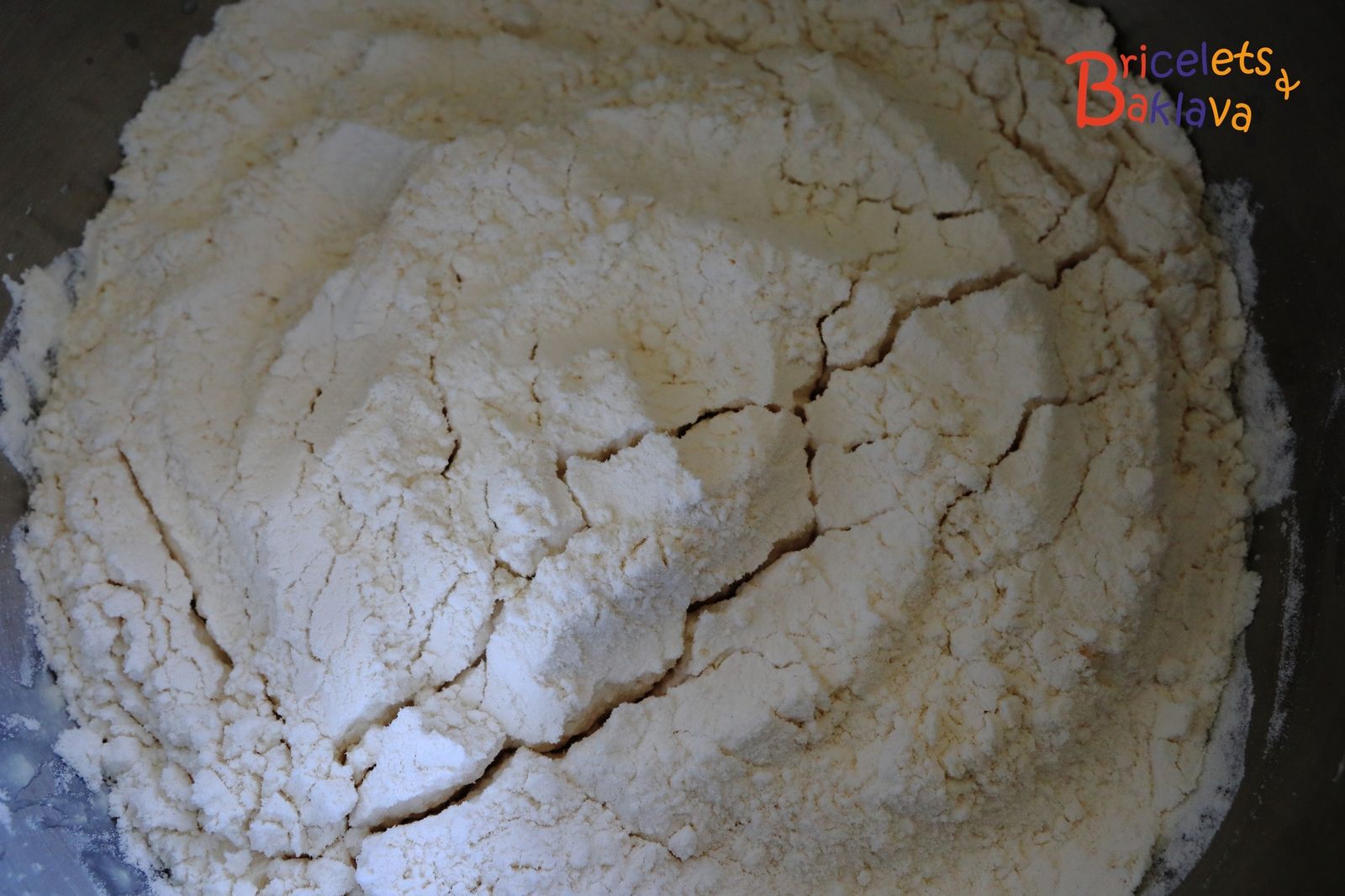 Laisser le bol à température ambiante, sans le couvrir, pendant environ 30 à 60 minutes. Quand la surface de la farine commence à faire des fissures c’est que la préparation est prête.