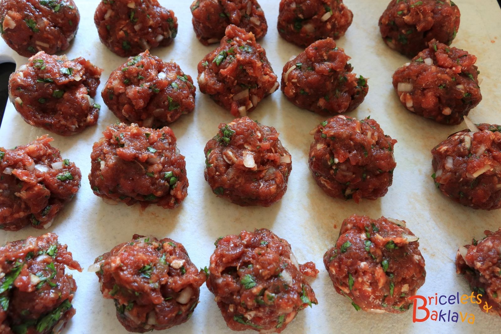 Ensuite avec vos mains mouillée, portionner cette farce et en faire des petites boulettes, de la grosseur d’une noix. Elles devraient faire environ 15 grammes et vous devriez en obtenir 40 pièces.