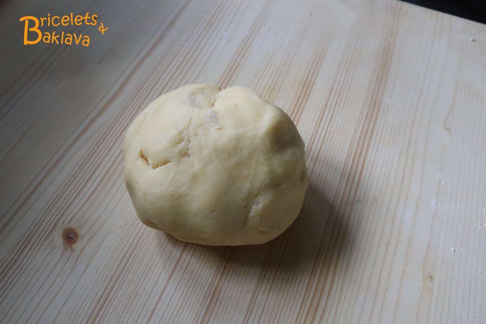 Former une boule puis l’aplatir un peu pour en faire une rondelle d’environ 12 cm de diamètre. L’emballer dans un film alimentaire et la réfrigérer au minimum 1 heure.