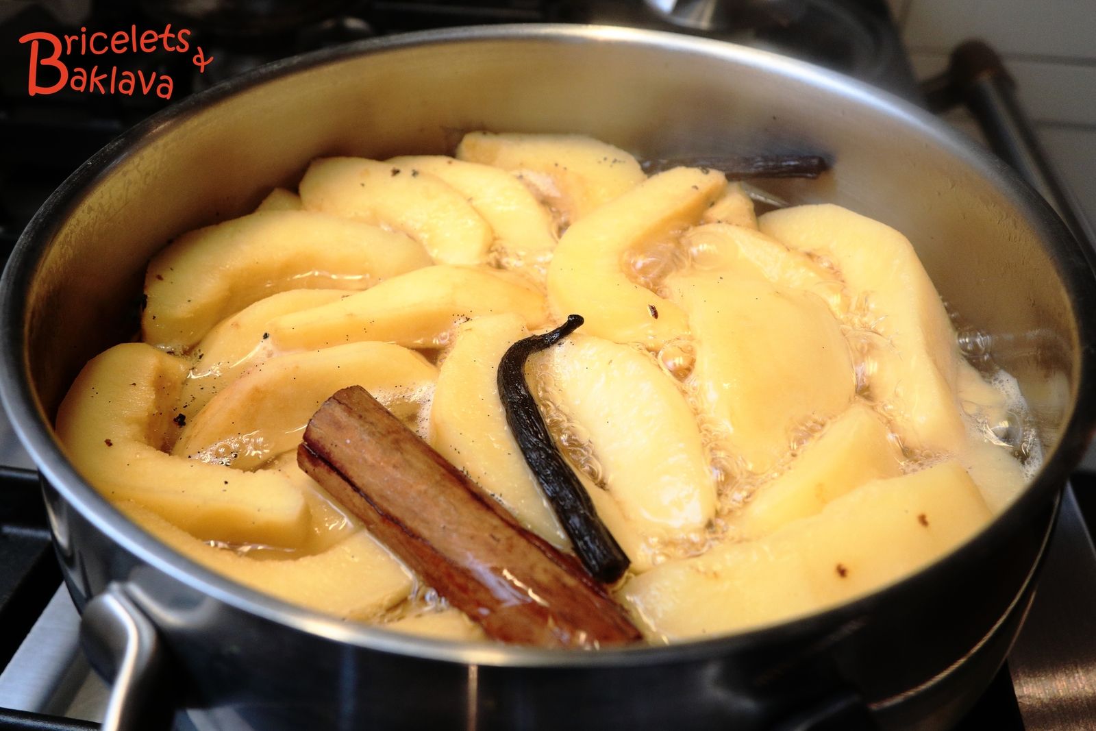 Stopper le feu et avec une écumoire, sortir les tranches de coings délicatement et les réserver.