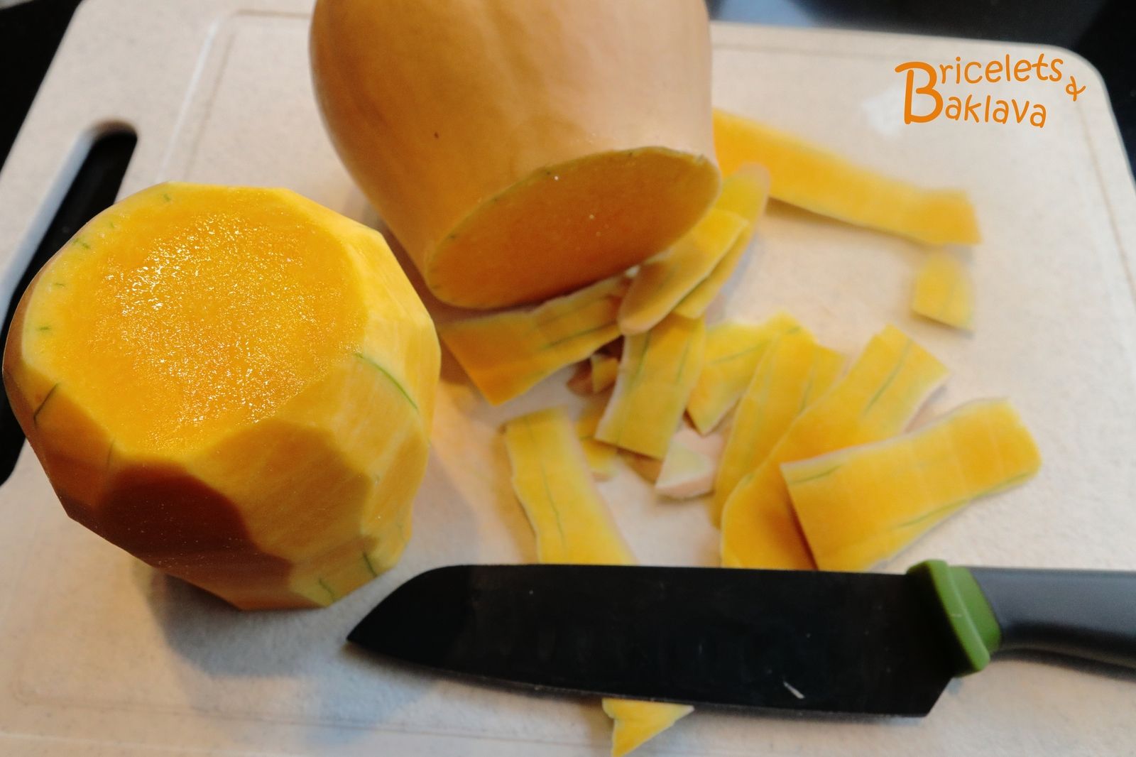 Le choix de la courge a aussi son importance. Toutes les variétés vont convenir mais je préfère utiliser la butternut, peu aqueuse et crémeuse. Et l’idéal c’est de la faire cuire à sec, dans le four afin qu’elle perde son eau et concentre ses saveurs.