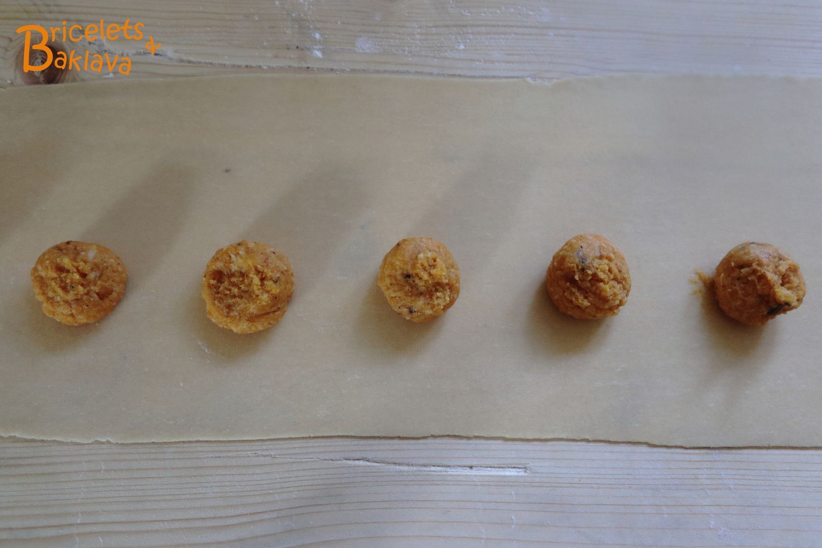Transférer le tout sur une plaque de cuisson recouverte d’un papier sulfurisé.