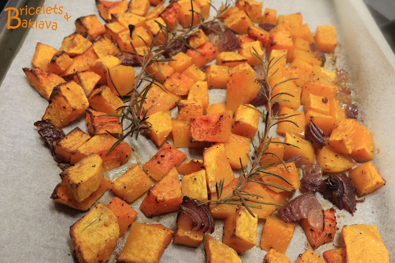 Enfourner à 200°C pour environ 30 minutes ou jusqu’à ce que la courge soit tendre et cuite.