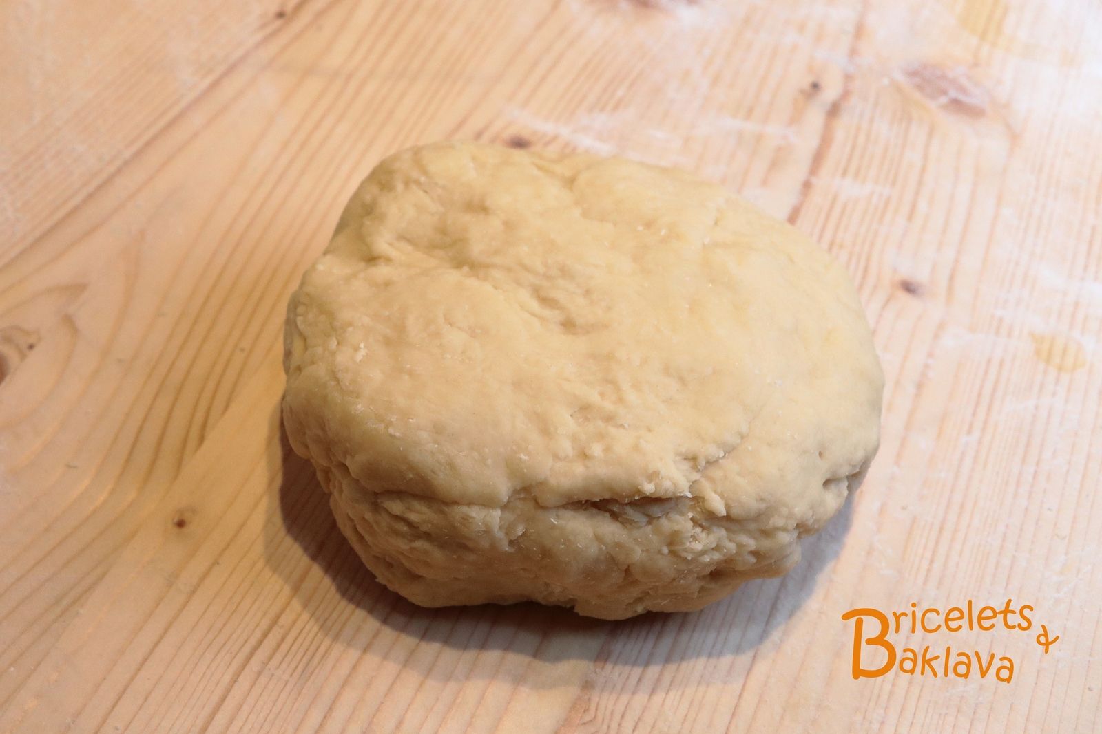 Une fois la pâte amalgamée, la mettre sur le plan de travail et la replier plusieurs fois sur elle-même, en tout cas pendant 5 minutes, jusqu'à ce qu'elle devienne lisse et souple. Et surtout ne vous étonnez pas, cette pâte est très ferme, c’est normal.