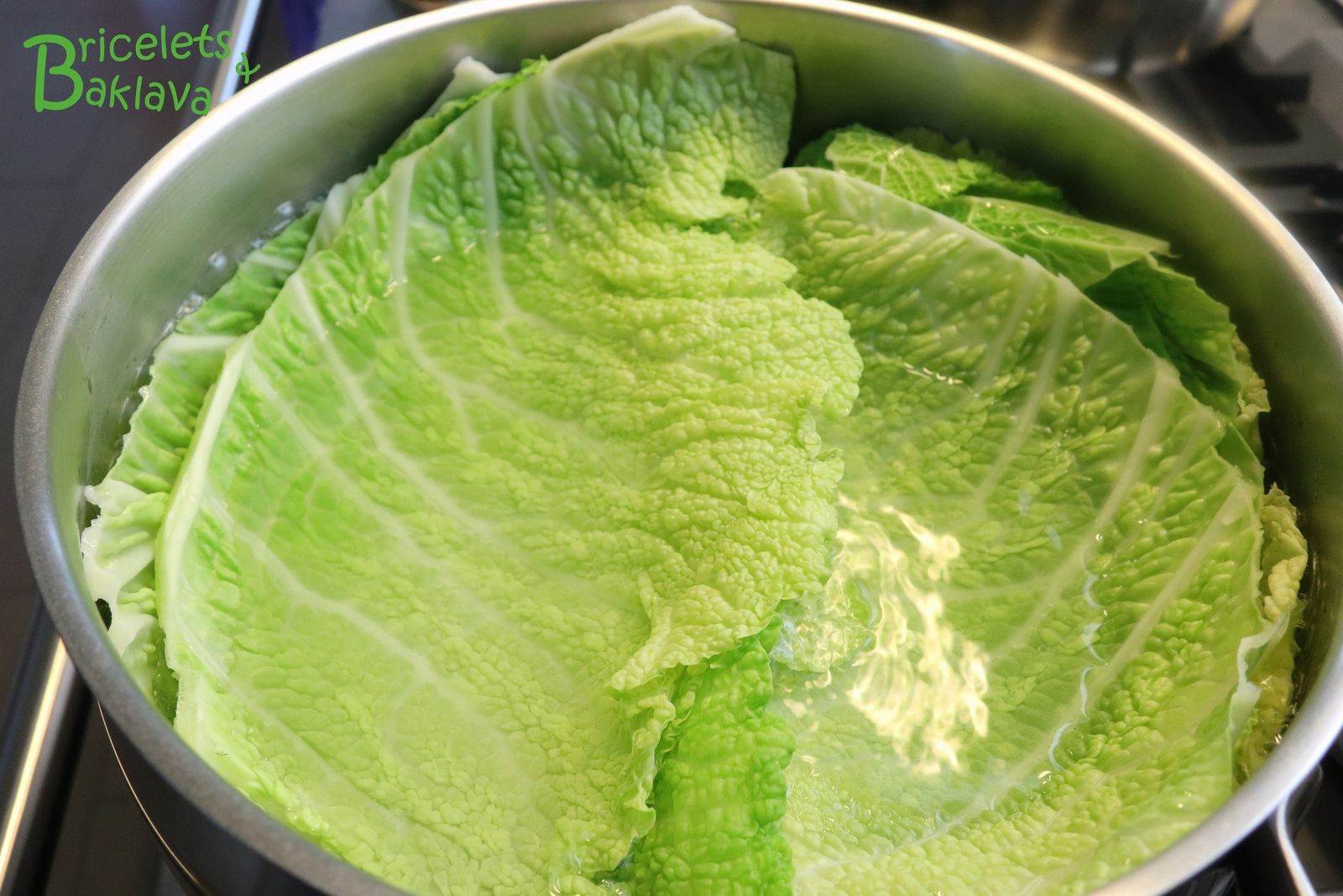 Plonger les feuilles de chou et les blanchir pendant 4 à 5 minutes, ceci afin de les assouplir.