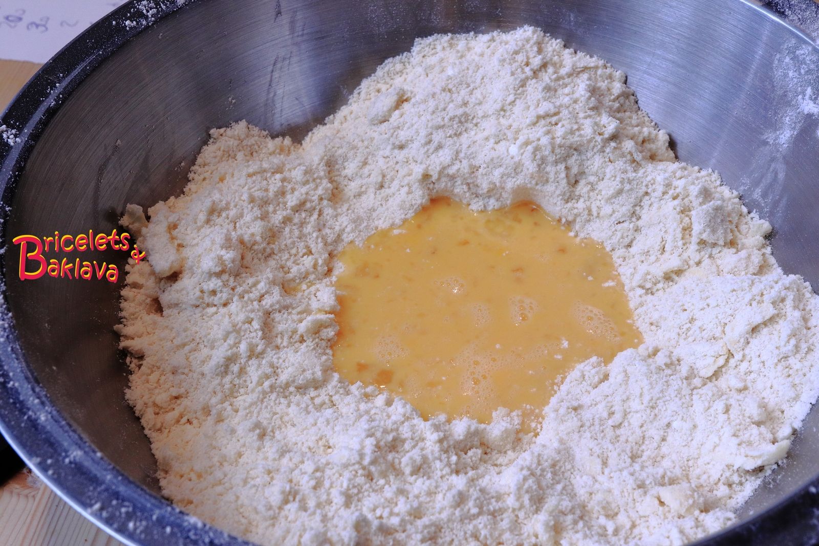 Faire une fontaine et y verser les œufs préalablement battus