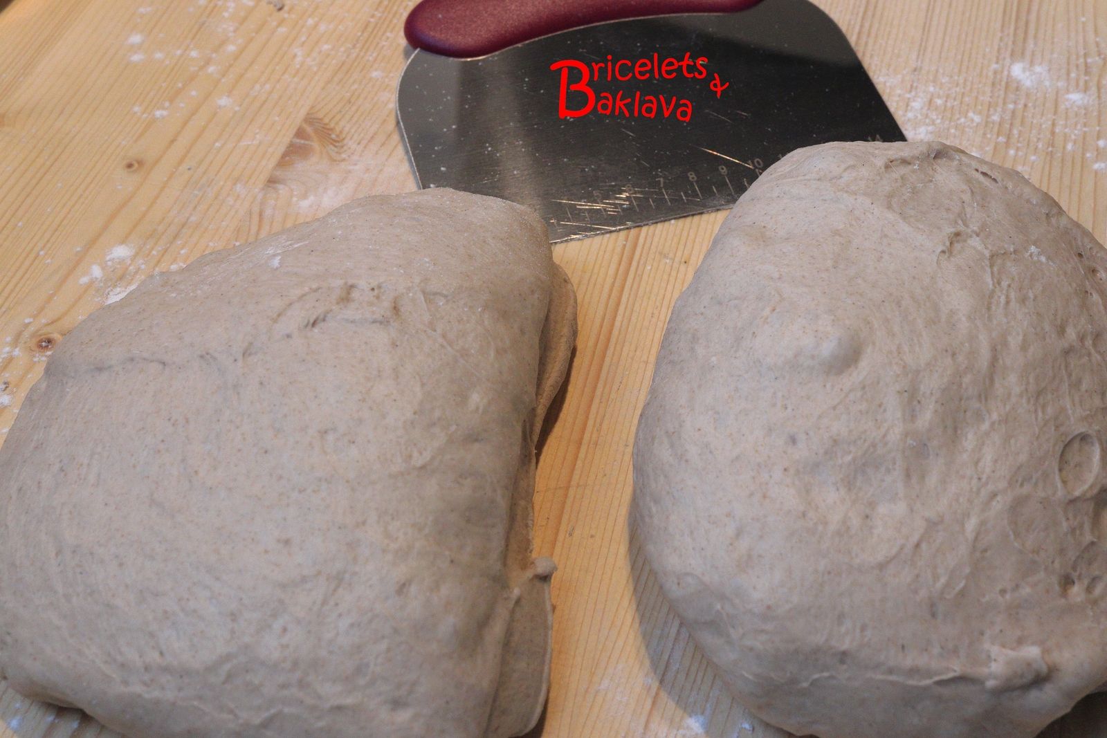 Reprendre les pâtons et les façonner en rond puis les disposer, soudure en dessous, dans des bannetons recouvert d’une feuille de papier sulfurisé.