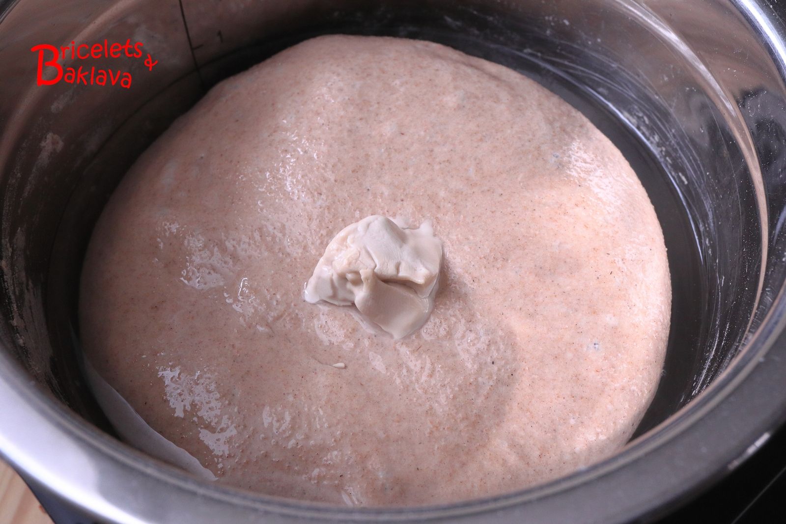 Il y a très peu de levure pour ce levain, seulement une petite noisette, mais cela suffit largement.